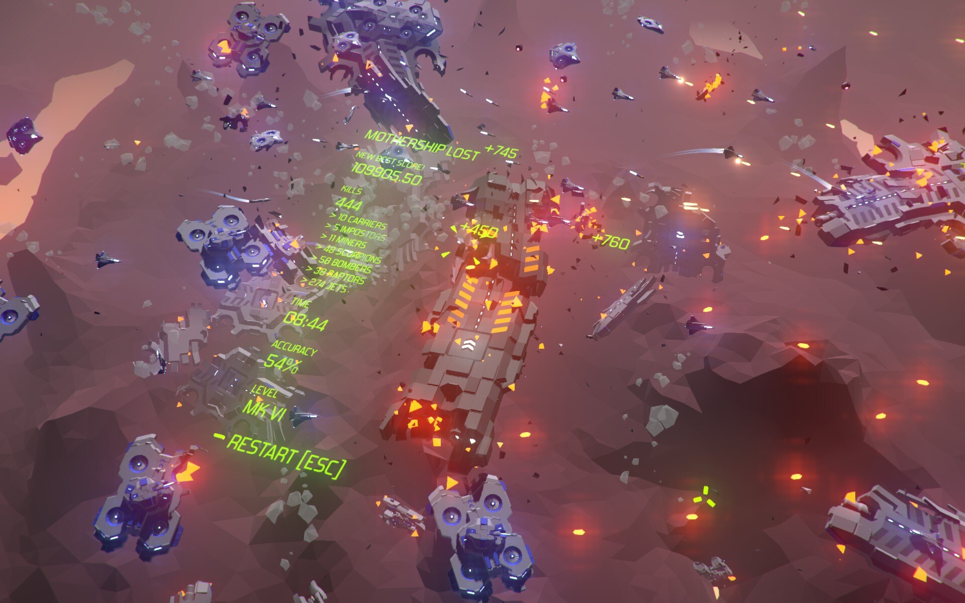 В игре реализована уникальная система автоматической модернизации, при которой ваш корабль трансформируется во все более мощные формы по мере уничтожения врагов, проходя четыре различных этапа модернизации с уникальным оружием. Крупные вражеские корабли можно тактически разбирать по частям, что дает опытным игрокам стратегическое преимущество в бою. Управление боем обманчиво простое - прицеливание и стрельба левой кнопкой мыши, удар правой кнопкой мыши и удержание огня для ремонта - позволяет играть одной рукой, но при этом остается сложным для освоения.