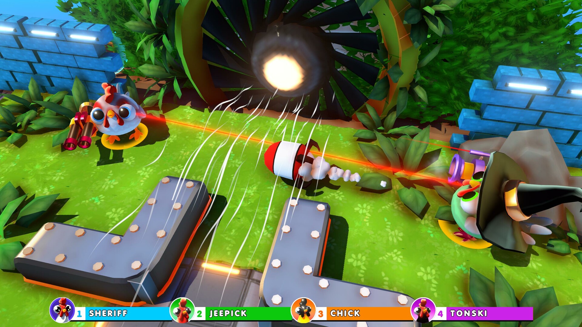 "Chickenoidz Super Party" - это экшен-инди-драка, разработанная RaveGameDev, в которой вы управляете пернатыми бойцами в хаотичных 10-минутных матчах. Сражайтесь с друзьями на домашних вечеринках или играйте с игроками по всему миру. В игре есть механика мутации ДНК, которая превращает вашу курицу в огромную силу, способную наносить сокрушительные удары и метать врагов по арене. В бою используется арсенал нелетального оружия, включая пистолеты, рогатки для запуска яиц, молотки, боксерские перчатки и карманные телепорты, которые позволяют оглушать, бить и обходить противников. Помимо стандартных смертельных матчей, специальные режимы игры предлагают альтернативные цели, где точность стрельбы отходит на второй план. Настройте своего цыпленка, выбрав более пятнадцати различных нарядов - от панк-рокеров и самураев до ведьм и ученых. Стремительный геймплей предполагает быстрые рефлексы и тактическое использование оружия, когда вы пытаетесь доминировать на поле боя. Игра сочетает в себе доступность и соревновательный хаос, поэтому она предназначена как для многопользовательских сессий на диване, так и для онлайн-соревнований.