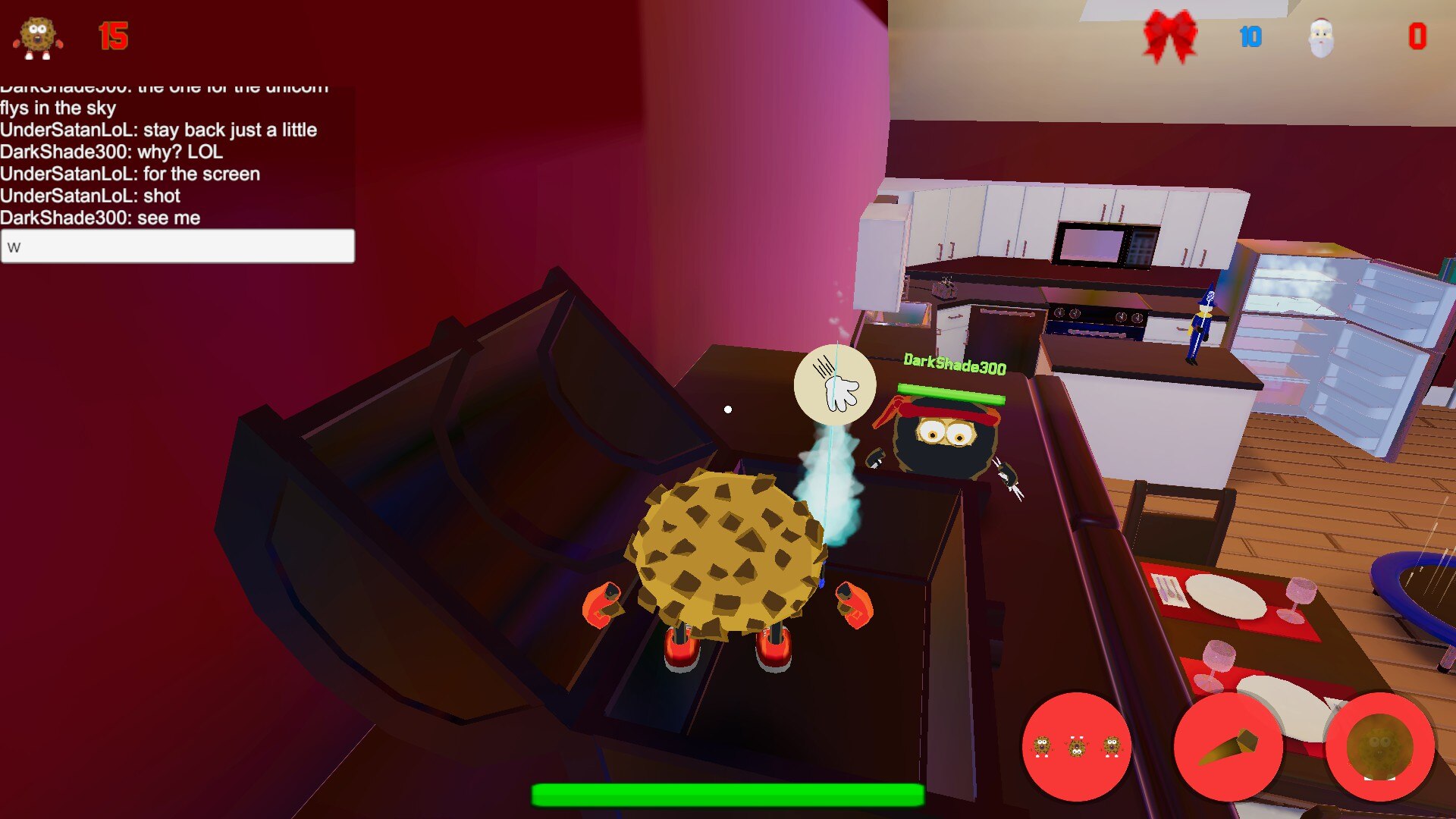 Бой проходит на трех картах - "Рождественский дом", "Северный полюс" и "Бухта печенья", каждая из которых наполнена интерактивными игрушками и бонусами, позволяющими управлять самолетами, танками и эльфами во время боя. Игроки могут настраивать свои печенья с помощью различных скинов, чтобы персонализировать своих пряничных воинов. В игре доступны как одиночный, так и многопользовательский режимы с возможностью подбора карт и режимов, а также пользовательские опции игры для личных матчей с друзьями или тренировки ботов. Игра представляет собой легкомысленный поворот к соревновательным шутерам, превращая праздничный сюжет в удивительно тактические боевые сценарии.