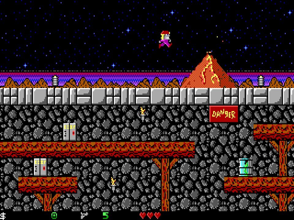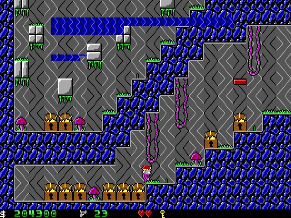"Crystal Caves" - экшен от Apogee Software, в котором вам предстоит провести охотника за сокровищами Майло через опасные подземные камеры в звездной системе Альтаир. То, что начинается как простая охота за ценными кристаллами, превращается в опасное путешествие по кишащим инопланетянами пещерам, полным смертоносных ловушек и передовых технологий. Игра состоит из трех отдельных эпизодов - "Неприятности с Твибблами", "Схватка" и "Майло против сверхновой" - каждый из которых отличается уникальными сюжетными элементами и визуальным оформлением. Геймплей основан на платформерах с изюминкой: Майло может ходить вверх ногами в условиях низкой гравитации, где даже стрельба из лазерного пистолета создает отдачу, которая может привести к опасности. Вам предстоит перемещаться по темным уровням, уворачиваться от падающих молотов и сражаться с различными инопланетными существами, включая летучих мышей, роняющих яйца, ползучих глаз и пауков, стреляющих паутиной. Пещеры заполнены роботами и враждебными дикими животными, решившими защитить свои кристаллические сокровища от вторжения. В игре реализована частичная поддержка контроллеров Xbox 360 для тех, кто предпочитает управление с помощью геймпада. Ваша конечная цель - помочь Майло собрать достаточно богатств, чтобы уйти с рутинной работы и жить в достатке.