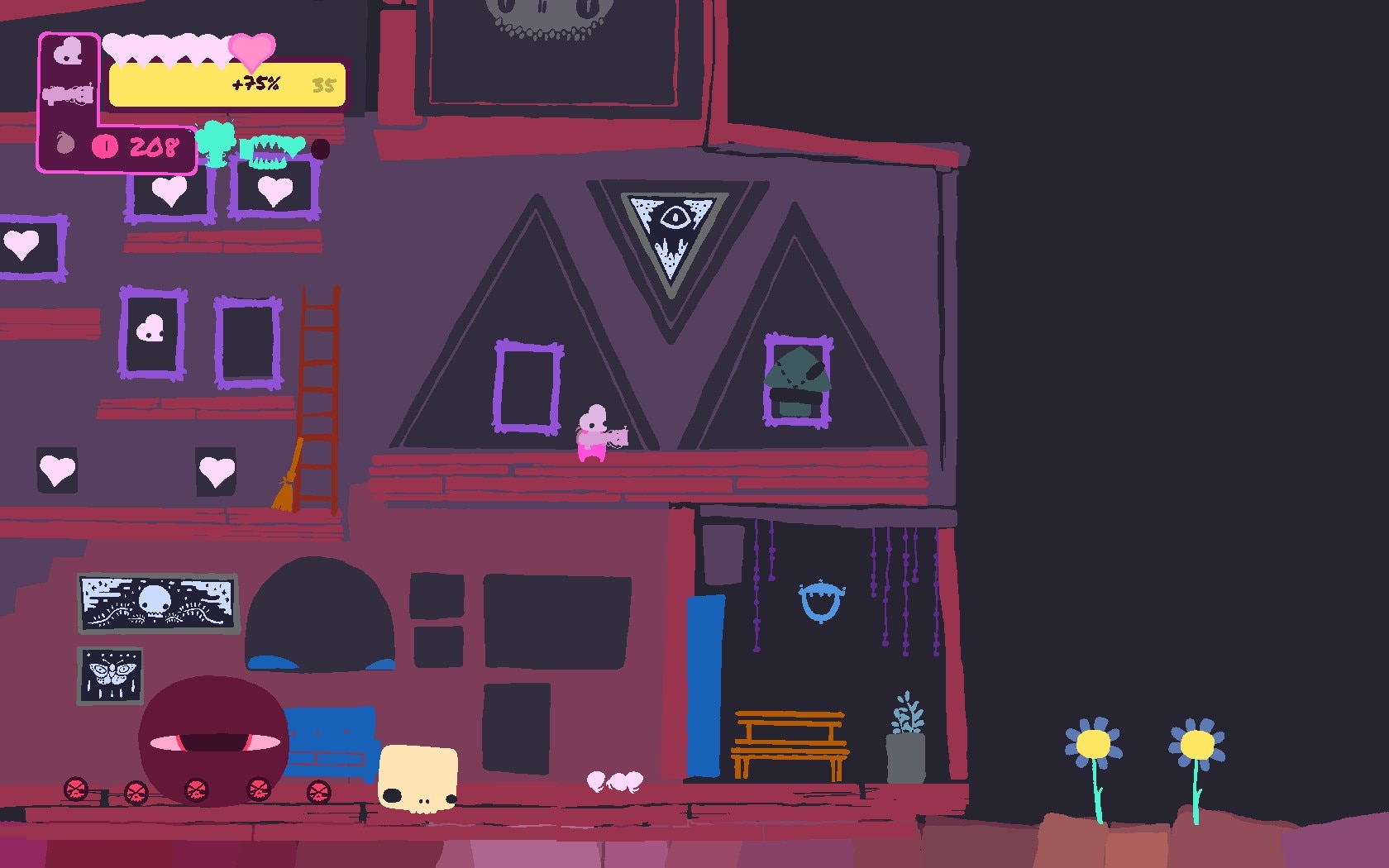 "GONNER2" - это инди-платформер с элементами экшена, разработанный компанией Art in Heart и являющийся продолжением игры GoNNER, победившей на IGF. Вы играете за Икка, маловероятного героя, который должен помочь Смерти отвоевать ее логово у таинственного захватчика, сражаясь на процедурно генерируемых уровнях, наполненных хаотичным окружением и причудливыми боссами. Игра сочетает в себе элементы roguelike и стремительный платформерный экшен, где буквально не потерять голову - часть задачи. Каждый забег представляет собой нелинейную структуру уровней, проходящих через сюрреалистичные, мрачно окрашенные миры, которые меняются с каждой попыткой. Вы будете экспериментировать с различными комбинациями голов, оружия и апгрейдов, чтобы найти свой любимый стиль игры, раскрывая скрытые секреты и тайны. Благодаря процедурной генерации ни один из двух забегов не будет одинаковым, а геймплей останется свежим и непредсказуемым. Помимо основной однопользовательской кампании, в GONNER2 есть кооперативный режим для вечеринок, где вы вместе с друзьями сможете справиться с безумием. Визуальный стиль игры подчеркивает резкие контрасты и всплески ярких цветов на темном фоне, создавая характерную эстетику. Если вам нужен сложный, многократно переигрываемый экшен с удобным управлением и креативными комбинациями оружия, GONNER2 обеспечит вам хаотичное веселье.
