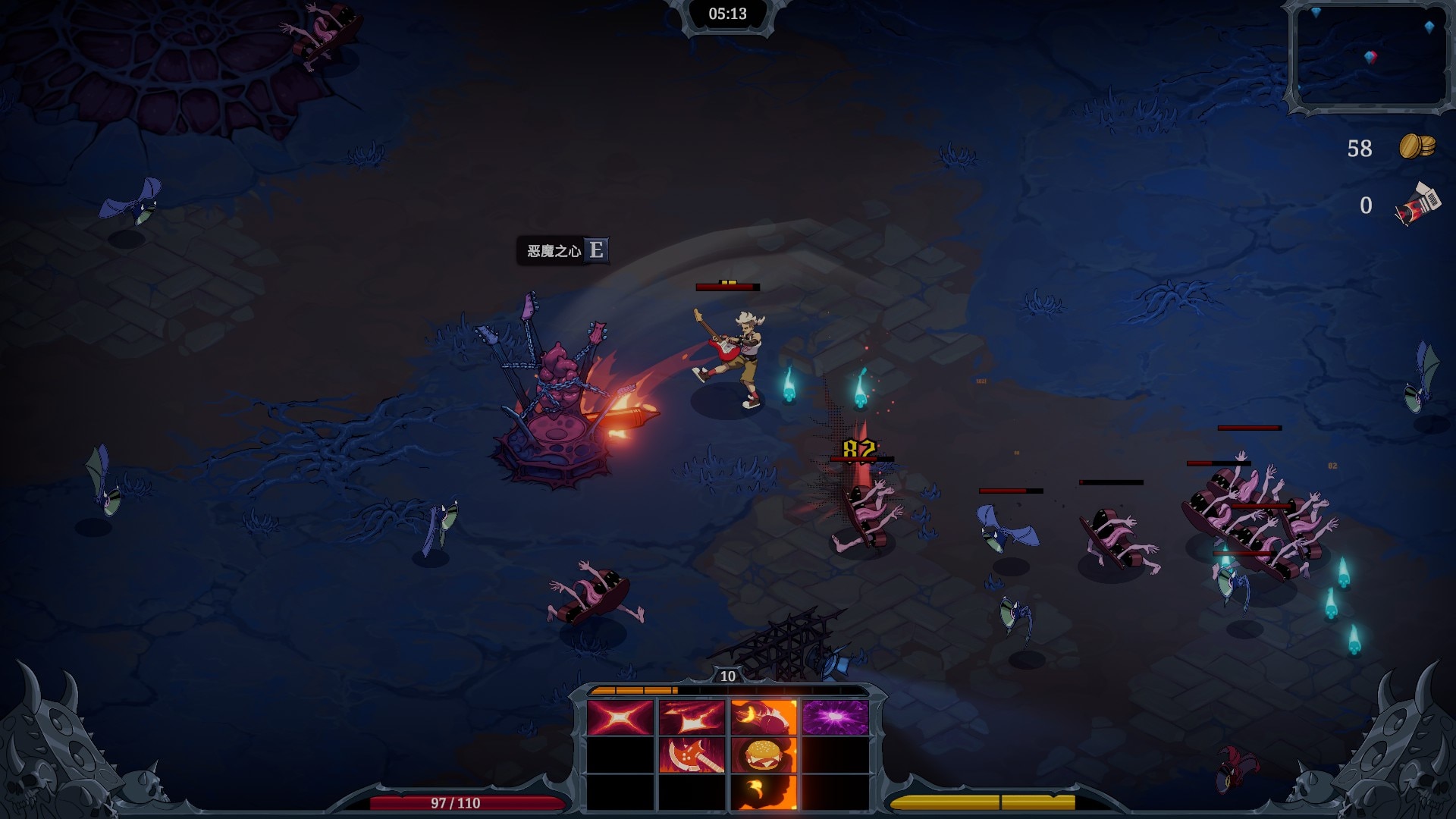 "Devil Jam" - это приключенческая ролевая игра в жанре survivor, разработанная компанией Rogueside, в которой вы окажетесь на самом напряженном поле музыкальной битвы в Аду. Заключив проклятую сделку с дьяволом, вы вынуждены выступать на вечном концерте, отбиваясь от полчищ обезумевших фанатов и адских врагов, использующих одержимые инструменты. Бой вращается вокруг автоатак, которые синхронизируются с ритмом, создавая ритмичный опыт, где сталкиваются музыка и хаос. В игре реализована уникальная система инвентаря на 12 слотов, в которой особое внимание уделяется расположению снаряжения и синергетическим комбинациям, что обеспечивает глубокое стратегическое разнообразие при многократном прохождении. Нарисованные вручную иллюстрации оживляют подземный мир с помощью стильных анимированных персонажей и эффектов, передающих хаотичную энергию Ада. Ваша конечная цель - победить саму Смерть и доказать, что вы - величайшая икона металла в загробном мире. Быстрый темп бега позволяет поддерживать высокий уровень интенсивности, пока вы осваиваете механику боя, управляемую ударами, и открываете новые стратегии. Вас ждут мощные боссы и все более сложные испытания, которые проверят ваши рефлексы и тактическое мышление. При каждом прохождении игры вы получаете новые комбинации снаряжения, врагов и препятствий, поэтому не будет двух одинаковых джем-сессий.