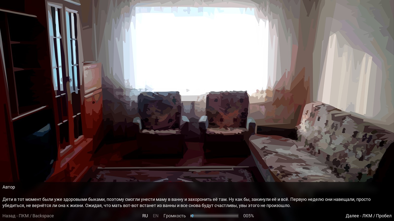 "Ritual" - это визуальная новелла, разработанная Valera Entertainment, в которой рассказывается о двух взаимосвязанных историях, повествующих о том, как люди выбирают совершенно разные пути в жизни. Одни герои уходят в себя, а другие устремляются вперед, чтобы создать новый смысл, и вы увидите обе сюжетные линии, переплетающиеся на протяжении всей игры. В центре сюжета - герои, которые находят свой собственный путь, при этом в путешествии присутствуют аллегорические элементы, призванные обеспокоить и бросить вызов игрокам. Игра отличается мрачным, зрелым повествованием, которое не стесняется сложных тем. Визуальное оформление игры выполнено в характерном художественном стиле, который дополняет мрачный тон повествования. Атмосферный саундтрек усиливает настроение и заставляет задуматься по мере прохождения разветвленных историй. Как инди-приключение в казуальном жанре, игра ставит во главу угла глубину повествования, а не сложную механику, что делает ее доступной и в то же время эмоционально насыщенной. Двойная сюжетная линия создает уникальную структуру, в которой выбор и последствия влияют на оба повествования.