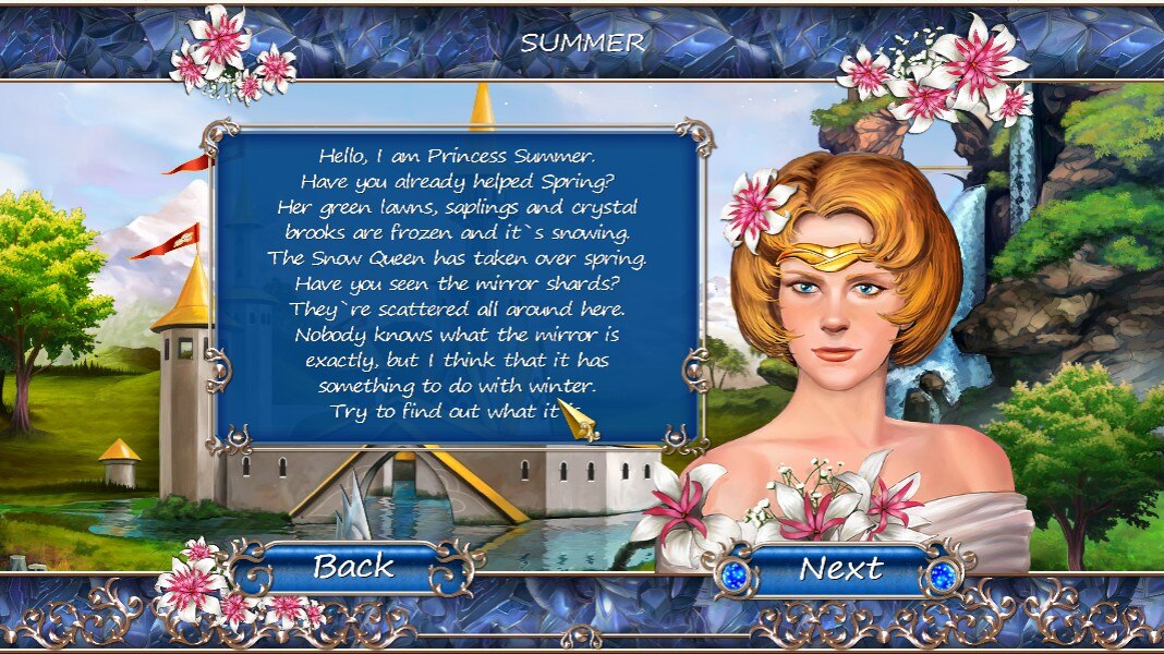 "Season Match" - это казуальная приключенческая игра, разработанная компанией URSE Games, в которой вы окажетесь в центре сказочного кризиса. Когда волшебное зеркало Снежной королевы разбивается вдребезги, она погружает сказочную страну в вечную зиму, и вам предстоит собрать осколки разбитого зеркала и победить ее. Вы пройдете через четыре разных сезона, чтобы восстановить баланс в заколдованном королевстве. В игре более 250 миссий, в которых вам предстоит пройти множество заданий и встретить на своем пути множество фантастических персонажей. Игра рассчитана на игроков всех возрастов и включает в себя обучающий курс, который поможет вам освоить механику, не перегружая новичков. Игровой процесс основан на формате match-puzzle, который прост в освоении, но предлагает достаточное разнообразие в обширном количестве миссий. Благодаря сказочному сеттингу и сезонной тематике игра сочетает в себе простую механику головоломок с легкими приключенческими элементами. Музыкальное сопровождение дополняет причудливую атмосферу, в которой вам предстоит покончить с вечной зимой.