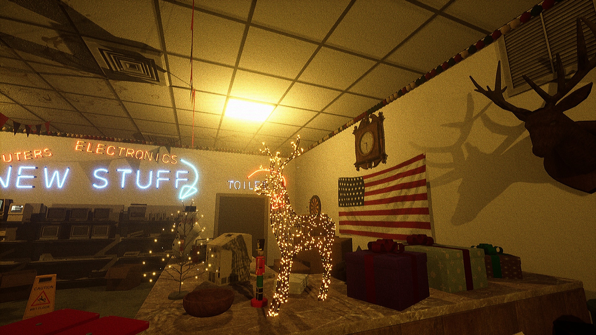 "The Holiday Story" - это короткометражный хоррор-симулятор, действие которого происходит во время рождественского сезона 1982 года. Вы играете за обычного мужчину, возвращающегося из командировки, который заходит в ярко освещенный магазин игрушек и электроники, чтобы найти строительный набор, который он обещал своему сыну. То, что начинается как обычный поход за покупками, быстро становится зловещим, когда в празднично украшенном магазине происходят странные события. Игра навевает страх благодаря эстетике VHS-фильтров, передающей эпоху ретро 1980-х годов, сочетая уютные праздничные образы со все более тревожной атмосферой. Реалистичное звуковое оформление усиливает напряжение, пока вы исследуете магазин и выясняете, что происходит вокруг вас. Разработанная JustTomcuk, эта инди-приключенческая симуляция сочетает в себе ностальгические рождественские образы и элементы психологического ужаса. Весь опыт можно пройти за 30-40 минут, что делает его компактным, но атмосферным путешествием. Контраст между жизнерадостными праздничными декорациями и наводящим ужас настроением создает эффективную нервозность на протяжении всего короткого игрового времени.