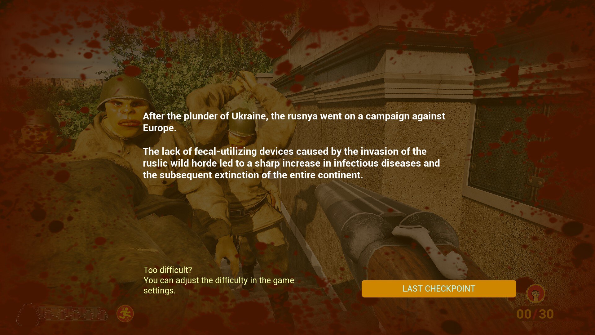 "RUSLICSTAN INVADES" - инди-игра в жанре action-adventure, разработанная SLAM AWAY GAMES, в которой игрокам предстоит защищать Украину от волн враждебных захватчиков. В центре игры - боевая механика, основанная на физике, где практически любой объект в окружении можно схватить и использовать против врагов. В бою используются детально проработанные системы расчленения в сочетании с приятными физическими взаимодействиями, благодаря которым каждое столкновение кажется динамичным и впечатляющим. Насилие в игре обернуто в низкопробную темную комедию, а сама игра представляет собой юмористическую историю, которая не воспринимается слишком серьезно. Игроки могут настраивать свой опыт с помощью параметров сложности, регулируя количество врагов, скорость и здоровье в соответствии с предпочитаемым уровнем сложности. Саундтрек дополняет хаотичные действия на протяжении всей кампании. Поскольку игра разрабатывается в одиночку, игрокам следует ожидать возможных ошибок и технических проблем. Несмотря на неровности, игра предлагает уникальное сочетание физического хаоса и мрачного юмора для тех, кто ищет нетрадиционный боевой опыт.