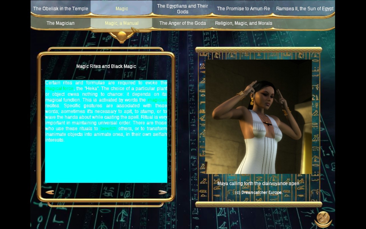 "The Egyptian Prophecy: The Fate of Ramses" - приключенческая игра в жанре point-and-click, разработанная компанией MC2, которая переносит игроков в Древний Египет. Вы играете за Майю, молодого мага, которому фараон поручил расследовать загадочные происшествия на стройплощадке массивного обелиска, посвященного богу Амону-Ра. Ваша миссия - раскрыть силы, разрушающие этот грандиозный архитектурный проект, преодолевая проклятия и магические угрозы. В игре реализованы панорамные виды 360, аналогичные таким играм, как "Возвращение на Таинственный остров" Жюля Верна и "Дракула: The Path of the Dragon, что позволяет исследовать окружение со всех сторон. Геймплей вращается вокруг решения разнообразных головоломок и загадок с помощью интуитивно понятной системы инвентаря. Графика и анимация высокой четкости оживляют древнеегипетскую обстановку с помощью детализированных визуальных эффектов. Атмосферу дополняют разнообразные звуковые ландшафты и завораживающая музыка, погружающие вас в мистический мир. В роли Майи вам понадобятся острая наблюдательность и умение решать проблемы, чтобы защитить свой народ и выполнить священную миссию фараона. Игра сочетает в себе исторический сеттинг и магические элементы, создавая увлекательное мистическое приключение.