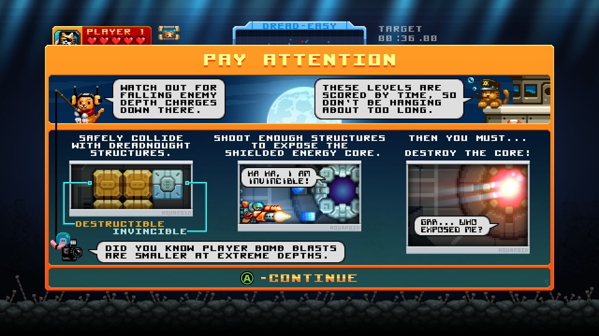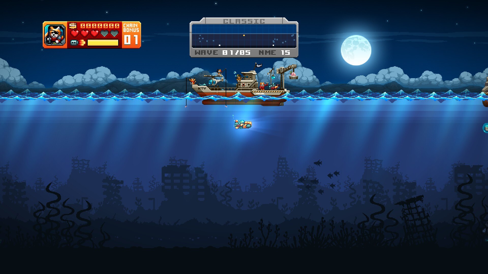 Пиксель-арт визуальное оформление включает в себя улучшенные фоны с параллакс-прокруткой и улучшенные графические эффекты, которые оживляют подводный мир. Бой проходит в быстром темпе, когда вы преодолеваете волны врагов-роботов, а также защищаете уязвимые шахты. Игра поддерживает ввод с контроллера и клавиатуры, но контроллеры обеспечивают более точное аналоговое управление движением.