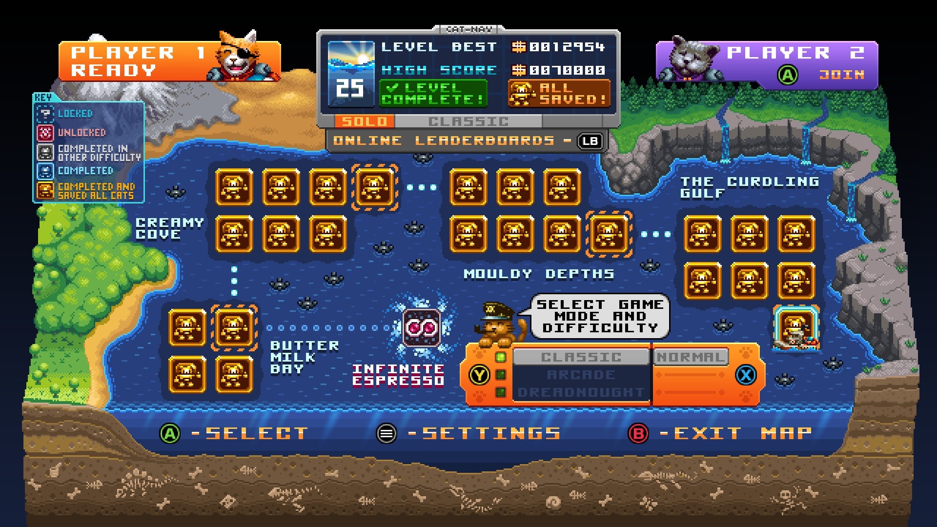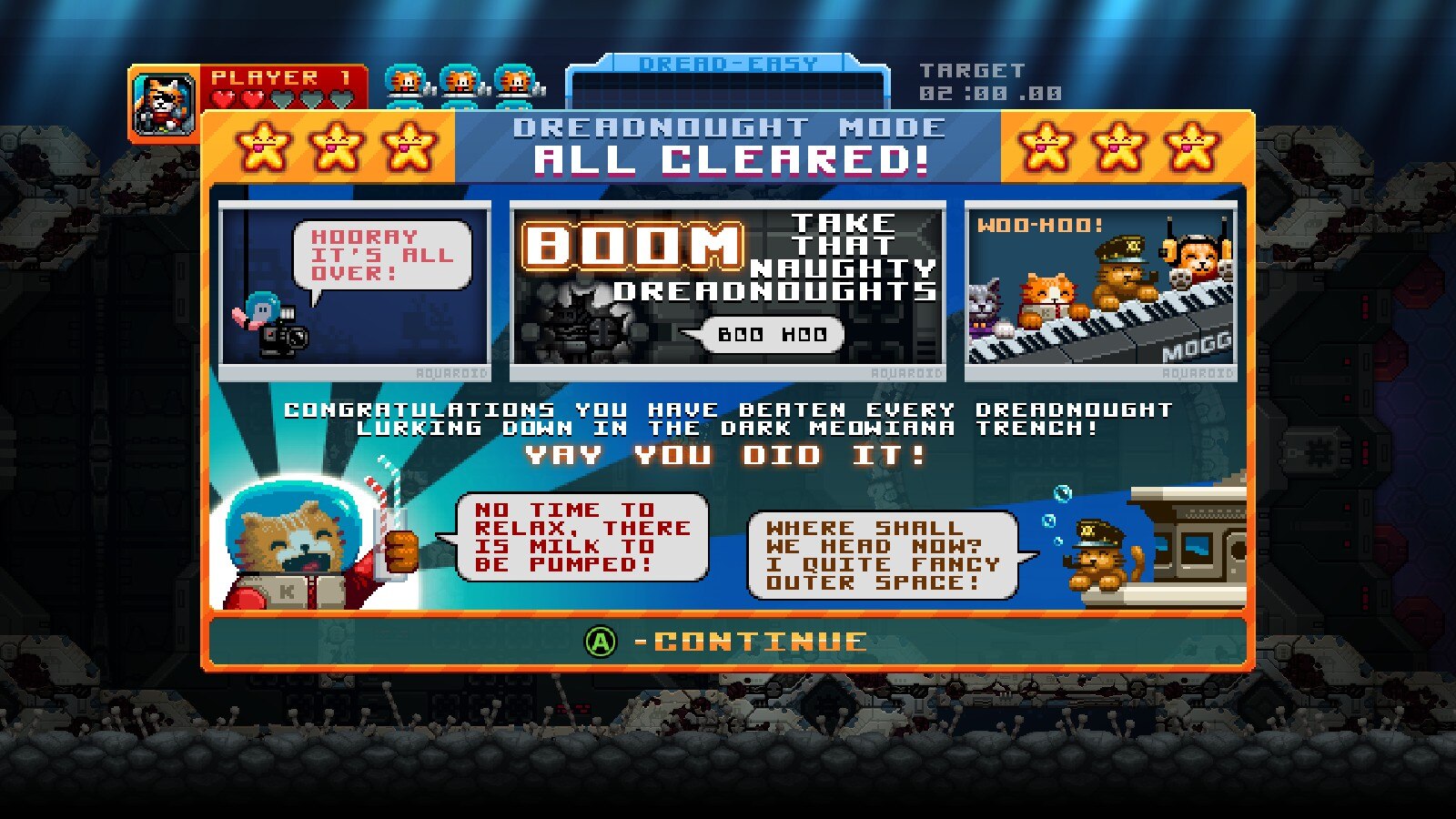 "AQUA KITTY UDX" - это подводный шутер с элементами экшена, в котором вам предстоит защищать котят, добывающих молоко, от механических морских существ в подводных условиях. В игре есть три разных режима: В классическом вы пройдете четыре морские зоны с битвами с боссами, в аркадном вы сможете собирать драгоценные камни и получать постоянные улучшения, а в дредноуте вам предстоит уничтожить массивные многоэкранные вражеские корабли, спасая при этом заключенных в тюрьму кошек.