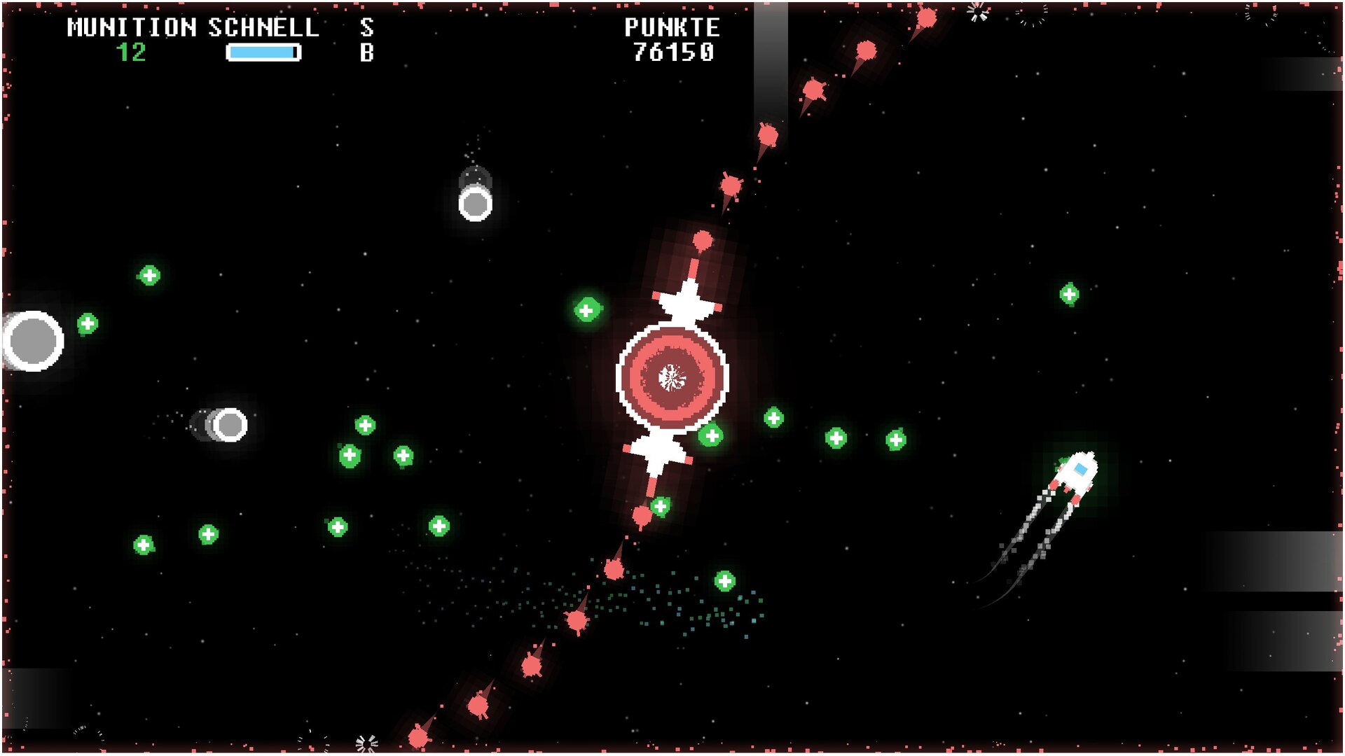 В игре есть бесконечный режим выживания, в котором вы собираете монеты, чтобы открыть новые корабли с различными атрибутами - одни быстрее, другие обладают лучшей огневой мощью или щитами - что дает вам стратегические возможности для восхождения по рейтингу лидеров. Многопользовательские режимы "Кооператив" и "Против" добавляют социальный геймплей, а достижения Steam и глобальные таблицы лидеров - соревновательные элементы. Пиксельная графика в стиле ретро дополнена уникальными саундтреками в стиле чиптюн для каждого корабля и многоязычной поддержкой десяти языков.
