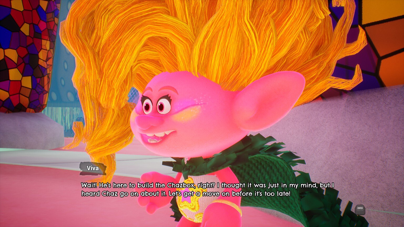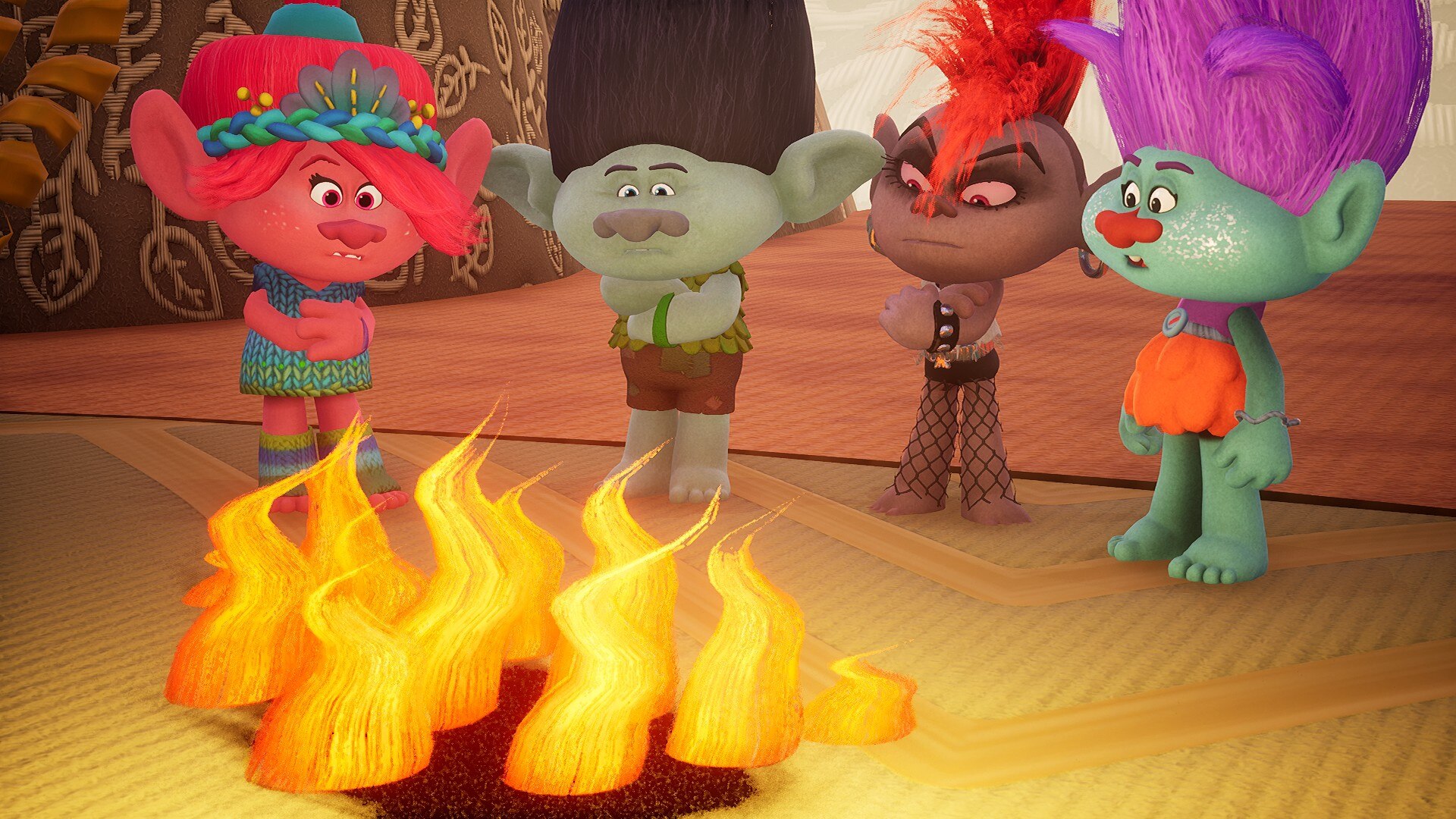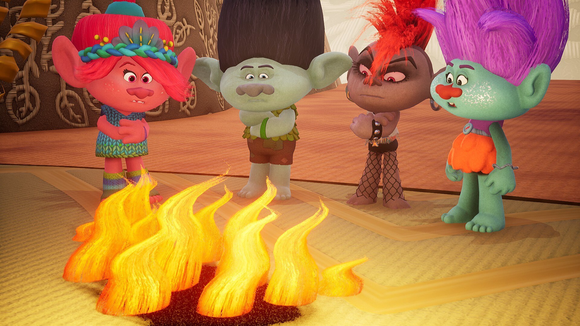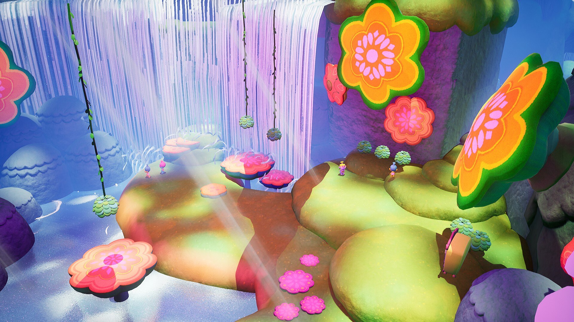Геймплей сочетает в себе исследование и бой с ритмичными мини-играми и головоломками, которые открывают особые способности и предметы. Приключения пройдут по знаковым местам из фильмов, включая Поп-Виллидж, Вулкан-Рок-Сити и город-матка Купера, и все это под аутентичный саундтрек, включающий песни из фильмов о Троллях, такие как "Get Back Up Again" и "Hair Up".