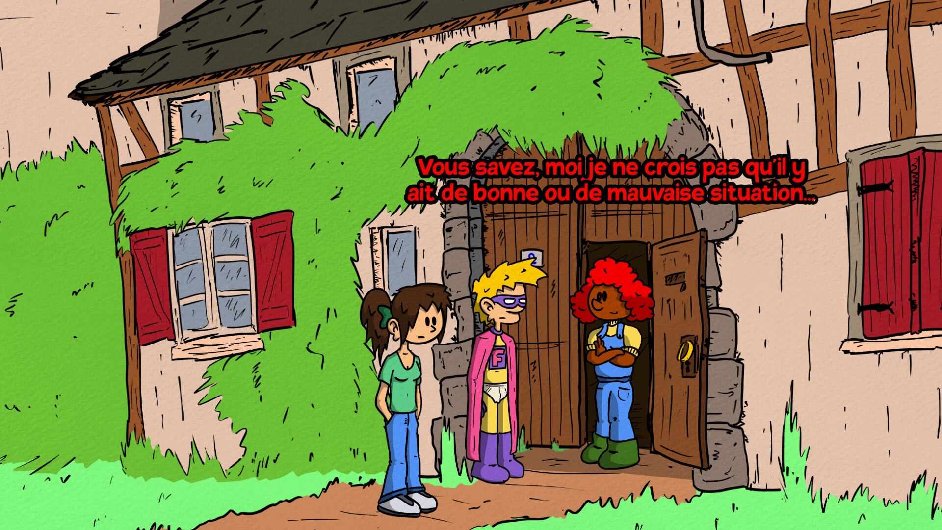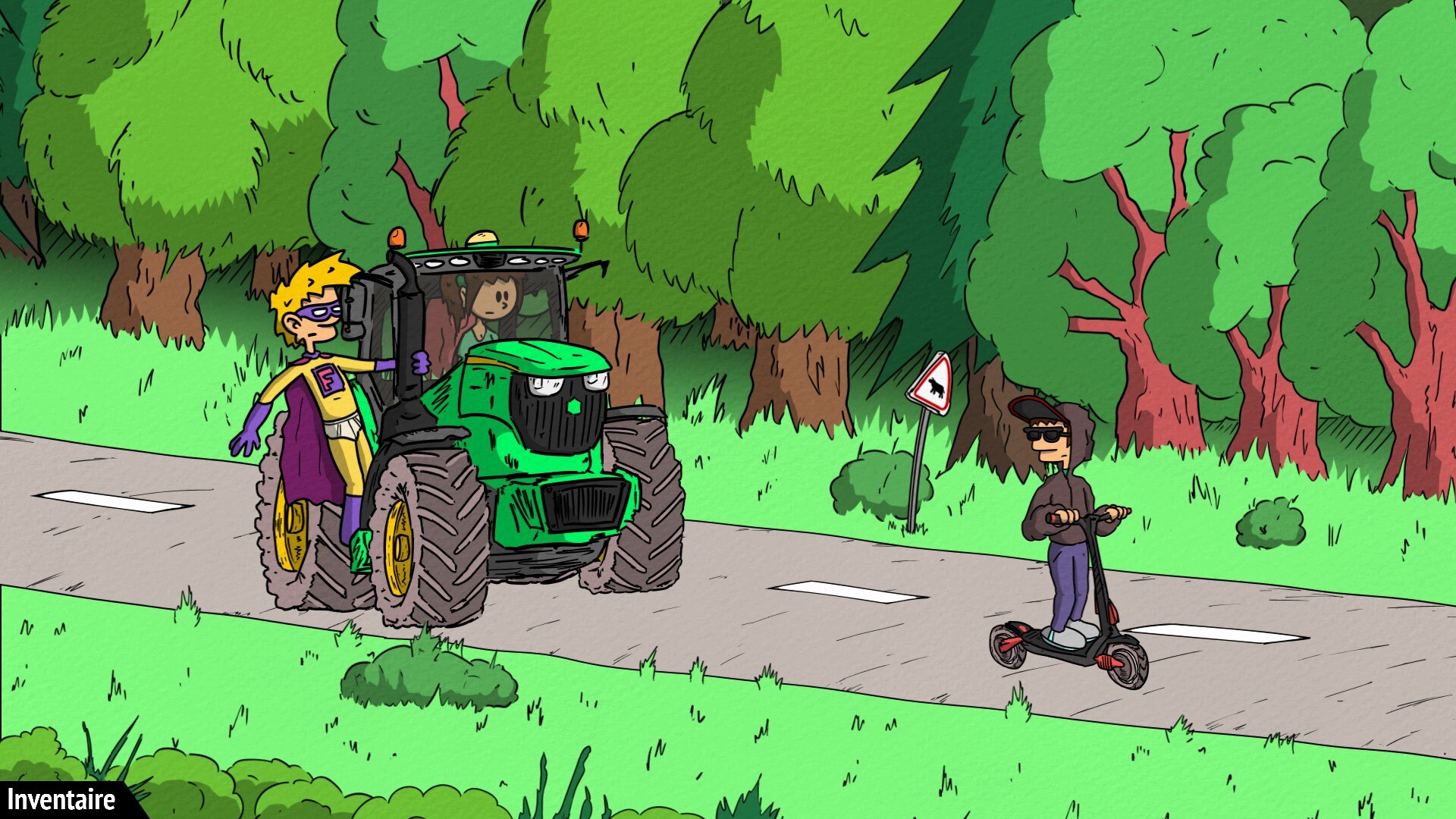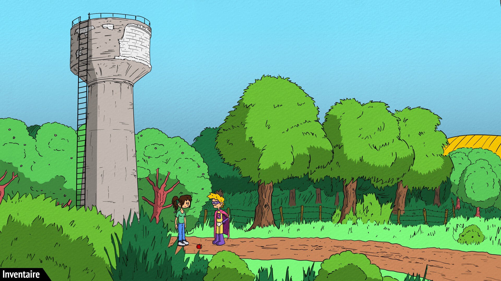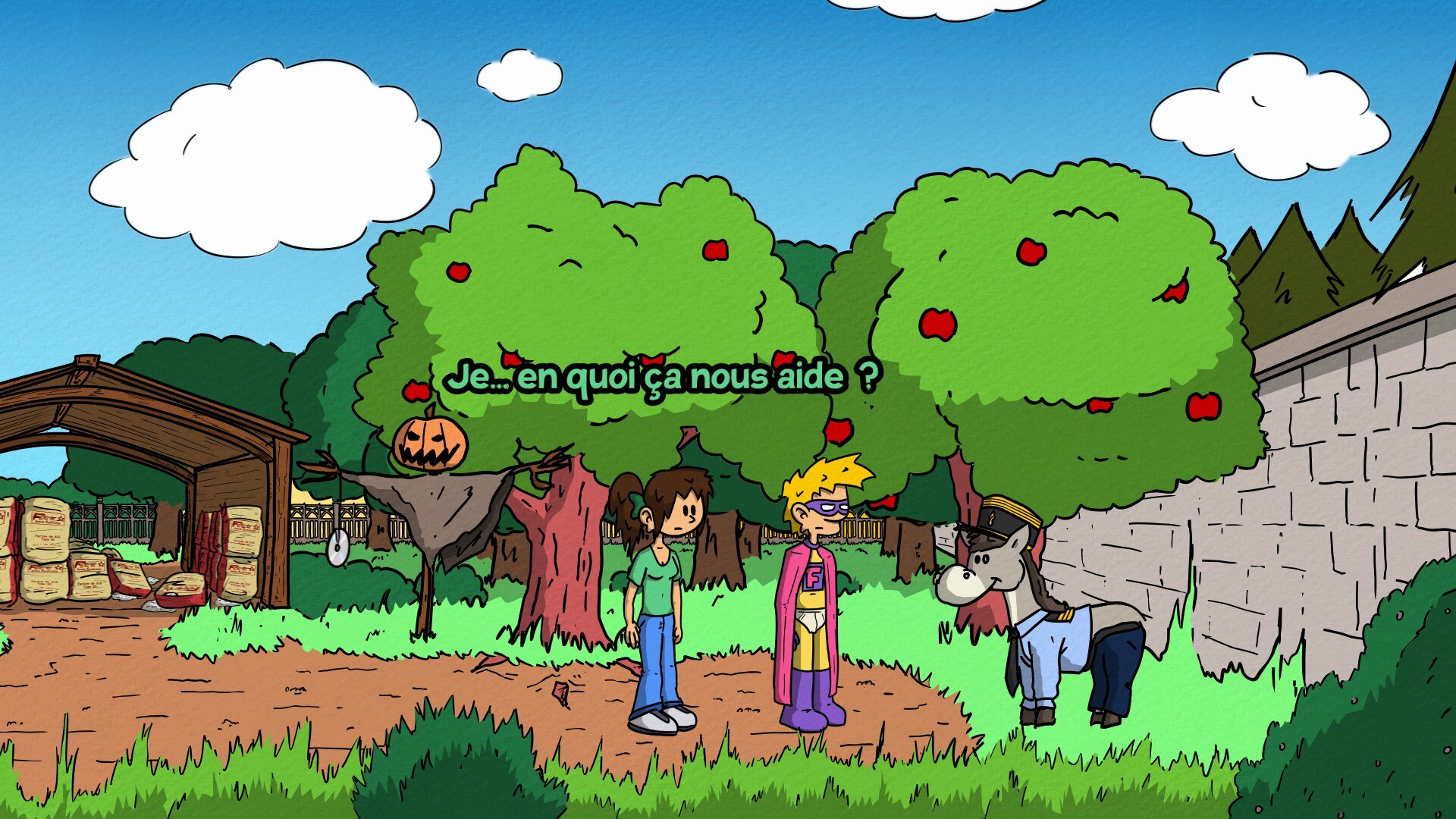 "Superfluous Returnz" - приключенческая инди-игра, повествующая о злоключениях эксцентричного миллиардера, который подрабатывает самым ненужным в мире супергероем. Действие игры разворачивается в тихой французской деревушке Фошуньи. Игроки управляют Харпагоном Лонионом по прозвищу Superfluous, который расследует потрясающее преступление, связанное с кражей яблок из местных садов. Его практичная помощница Софи пытается обуздать его чрезмерные героические фантазии, и это приключение в жанре point-and-click обеспечивает комедию за счет абсурдного контраста между обыденной обстановкой и грандиозной личностью главного героя - супергероя.