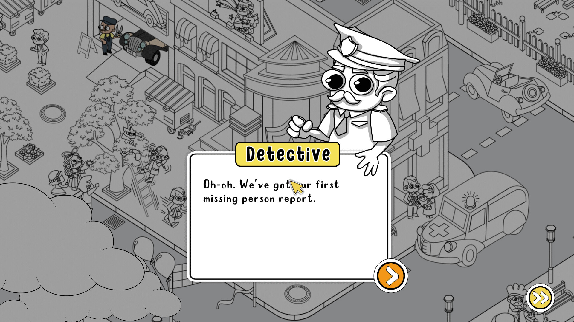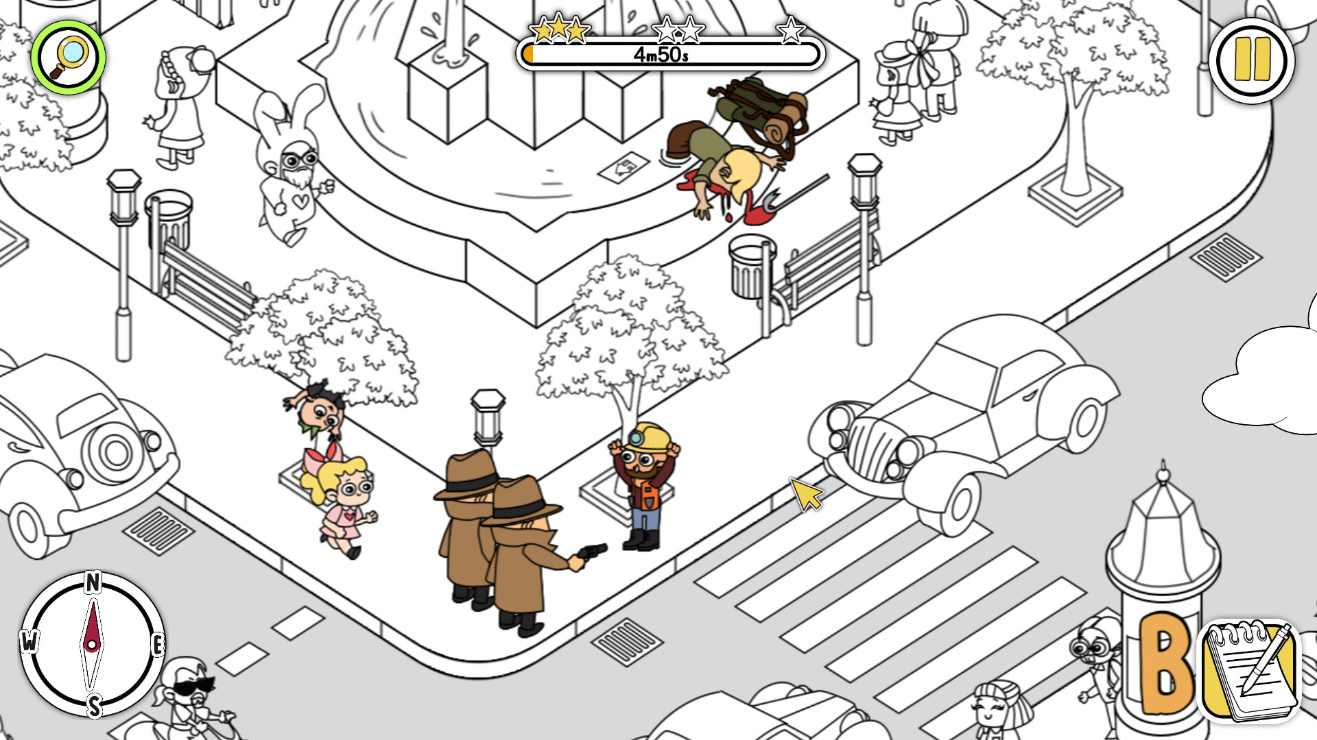 "Crowded Mysteries" - это казуальная игра со скрытыми объектами, разработанная Brave Giant, в которой вы играете роль несколько необычного детектива города Тайн. Ваша миссия заключается в расследовании различных преступлений по всему городу путем поиска улик, которые вы затем передаете своему усатому напарнику-полицейскому для допроса подозреваемых. Игровой процесс вращается вокруг поиска улик на местах преступлений, которые варьируются от заметных до намеренно скрытых, бросая вызов вашим наблюдательным навыкам, когда вы работаете над многочисленными делами. Вы обладаете необычной способностью под названием "4D-зрение", которая позволяет вам воспринимать пространство и время, что дает вам преимущество в обнаружении скрытых деталей, которые обычные детективы могли бы пропустить. Игра награждает вас звездами за быстрое завершение расследования, но не торопитесь, это не помешает вам продвигаться по делам. Ожидайте множество преступлений и подозреваемых, с которыми вам придется столкнуться, прокладывая свой путь через криминальный мир Тайного Города. Тон игры легкомысленный и самокритичный, она высмеивает детективные тропы, но при этом предлагает простой геймплей со скрытыми объектами. Она рассчитана на игроков, которые хотят получить расслабленный опыт расследования без сложных механик и тяжелых сюжетных линий.