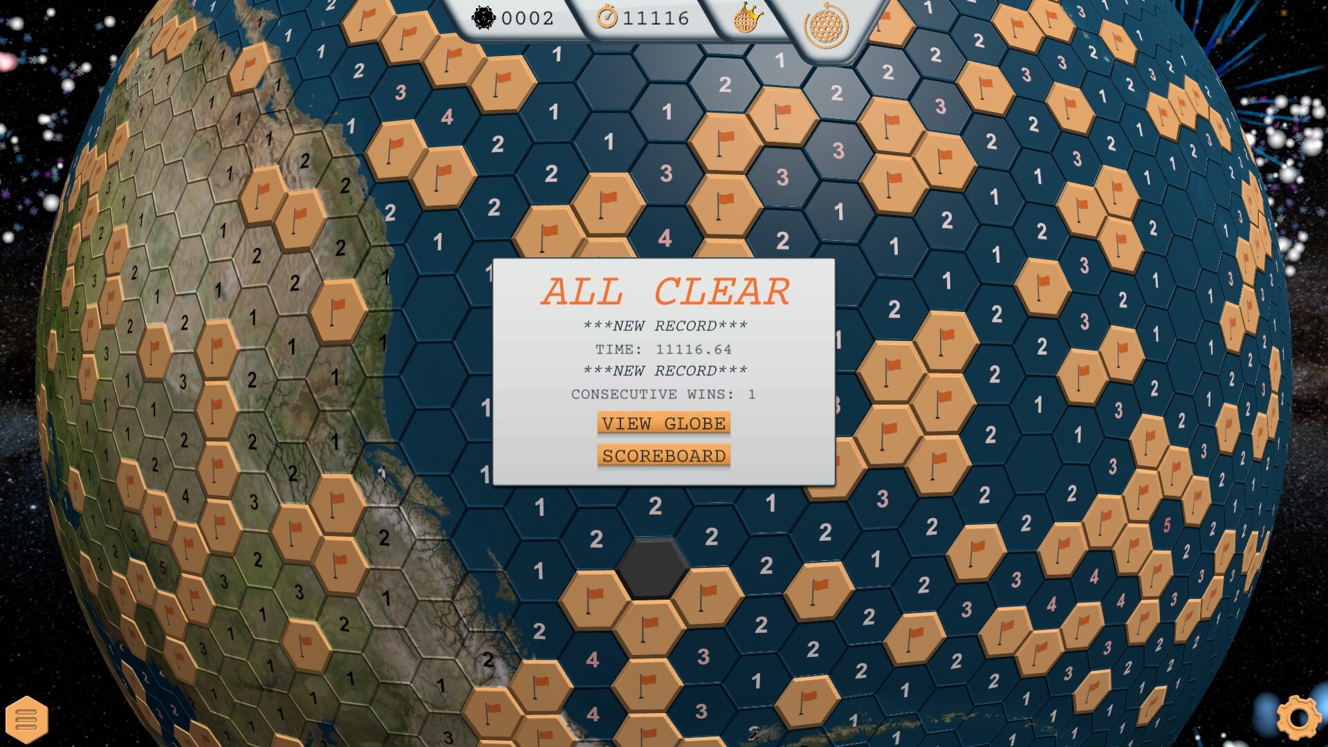 "Globesweeper" - это современная версия minesweeper, в которой классический геймплей головоломки разворачивается вокруг сферических глобусов. Разработанная Incandescent Games, эта казуальная инди-головоломка ставит перед вами задачу разминировать плитки, анализируя цифры, обозначающие соседние мины - одно неверное движение приводит к детонации всего глобуса и вынуждает перезапустить игру. Игра предлагает три различных типа сетки (шестиугольники, треугольники и традиционные квадраты) для пяти размеров глобусов - от компактных сфер на 92 плитки до массивных бегемотов на 20 480 плиток. Вы можете играть в традиционном режиме или выбрать гарантированно решаемые головоломки, которые полностью исключают догадки. Основная механика остается верной minesweeper: открывайте плитки, считайте соседние мины, отмечайте опасные места и выводите безопасные ходы с помощью логики. Заполнение глобусов и получение достижений открывает 14 визуальных тем, включая Землю, Луну, Марс и варианты с драгоценными камнями, такими как рубин и сапфир. Благодаря четырем настройкам сложности и 120 глобальным таблицам лидеров, игра подходит как для быстрых случайных сессий, так и для марафонских попыток. Количество соседних плиток варьируется в зависимости от режима - шестиугольники имеют 6 соседей, квадраты - 8, а треугольники - 12, что добавляет стратегической глубины каждому типу сетки. Это прямолинейное минирование, переосмысленное с планетарным размахом и серьезными задачами на конец игры.