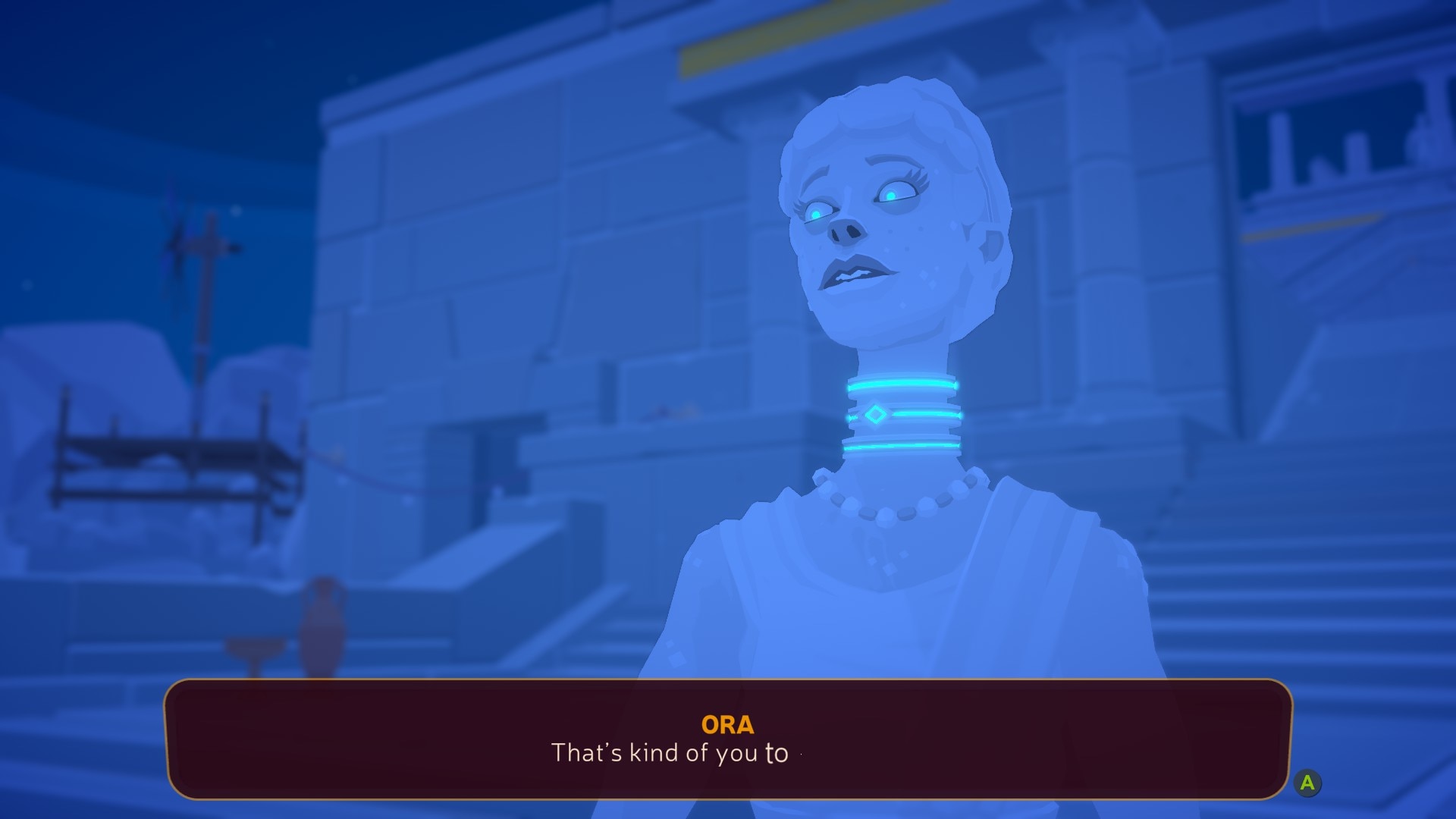 В игре нелинейное повествование, где вы открываете темы для разговора, исследуя предметы и локации, а затем обсуждаете их с различными богами, такими как Арес, Афина, Гермес и Аид, чтобы раскрыть проклятие острова. Завязывать дружеские отношения очень важно, поскольку некоторые секретные сведения остаются под замком до тех пор, пока вы не заслужите их доверие, оказывая услуги и выполняя непосильную работу, которая поможет вернуть храму былую славу. Остров работает по динамическому циклу день/ночь, поэтому некоторые локации и головоломки доступны только в определенное время.