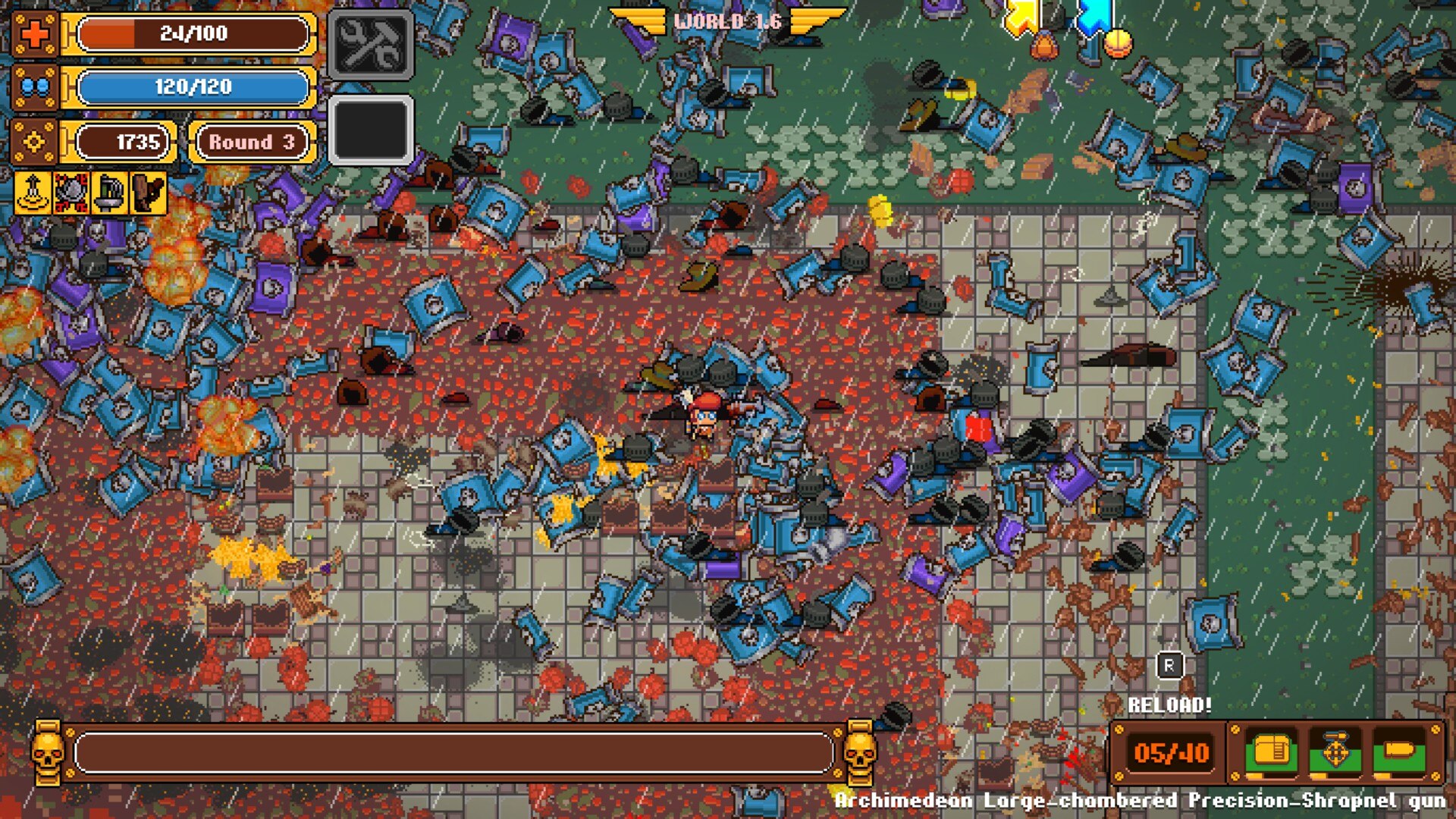"Woodpunk" — это ретро-рогалик в жанре пиксельного шутера, разработанный Meteorbyte Studios, который переносит вас в альтернативное Средневековье, где вы в роли изобретателя сражаетесь со злой Марией Медичи и ее армиями. Ваше основное оружие — это робот-компаньон, который генерирует процедурно созданные огнестрельные и холодное оружие из дерева и металлолома, благодаря чему каждый забег ощущается уникально. Игра обрушивает на вас более сотни врагов одновременно на полностью разрушаемых уровнях, причем каждый противник действует со своим собственным ИИ.