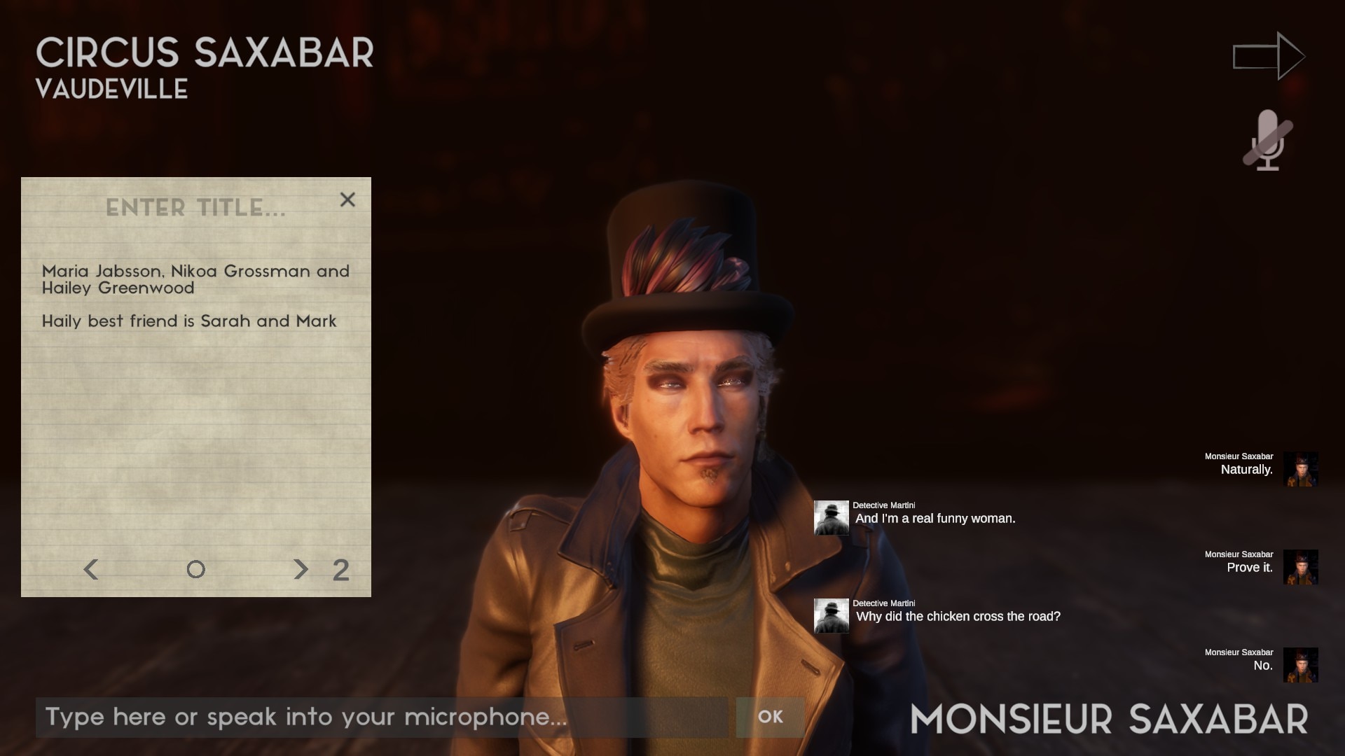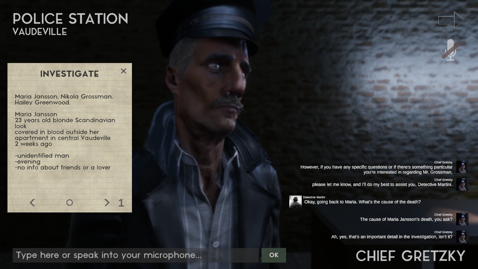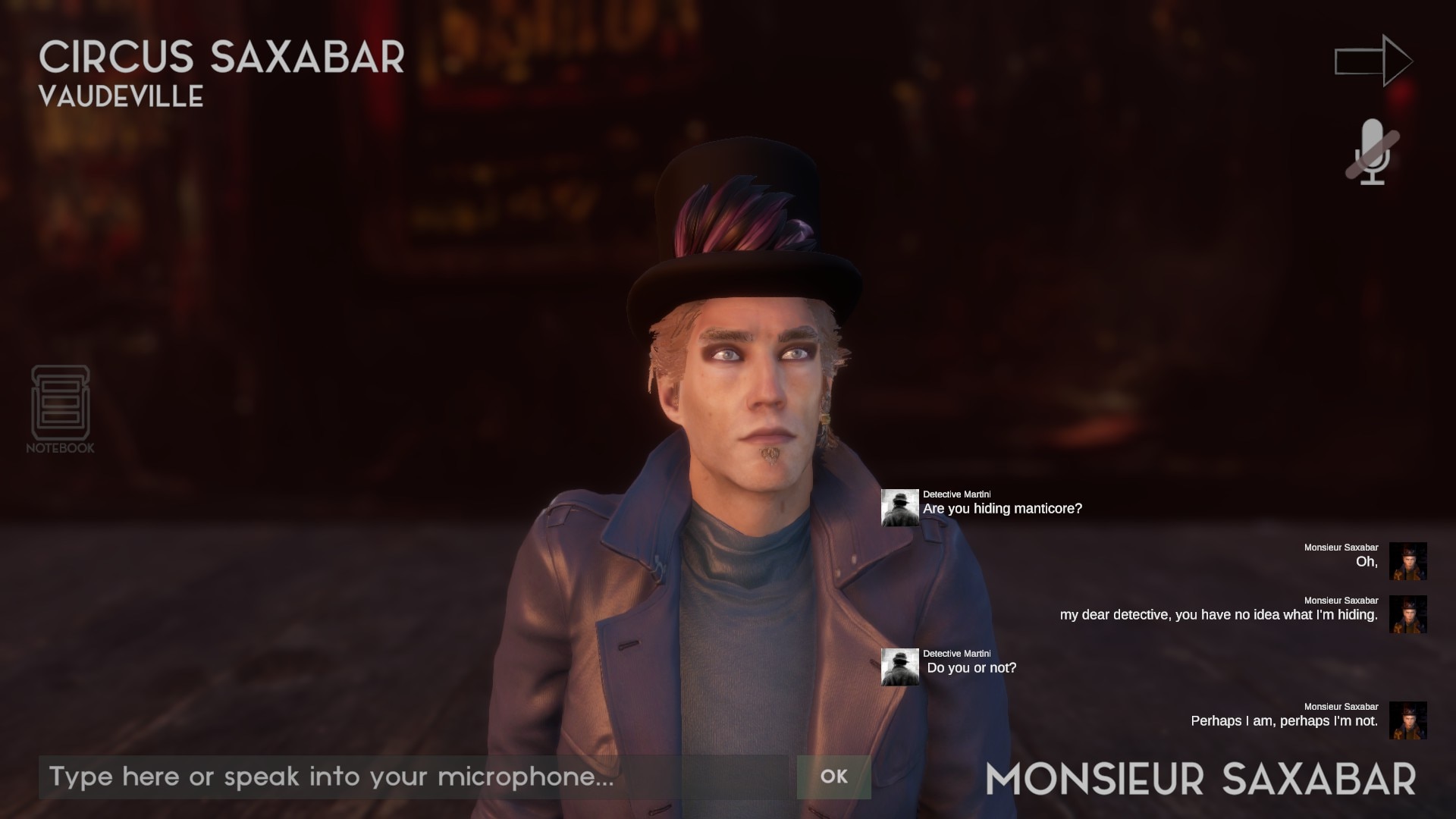 "Vaudeville" - это детективное приключение, разработанное компанией Bumblebee Studios, в котором вам предстоит сыграть роль детектива Мартини, частного детектива, расследующего тайну убийства в оживленном европейском городе. В центре игры - расследование трех жестоких убийств, причем каждая жертва связана с паутиной обмана и скрытых мотивов. Отличительной особенностью Vaudeville является продвинутая система диалогов с искусственным интеллектом, которая генерирует диалоги в реальном времени - вы можете печатать или говорить естественным образом, чтобы допрашивать подозреваемых и собирать информацию, делая каждое взаимодействие уникальным для вашего игрового процесса.