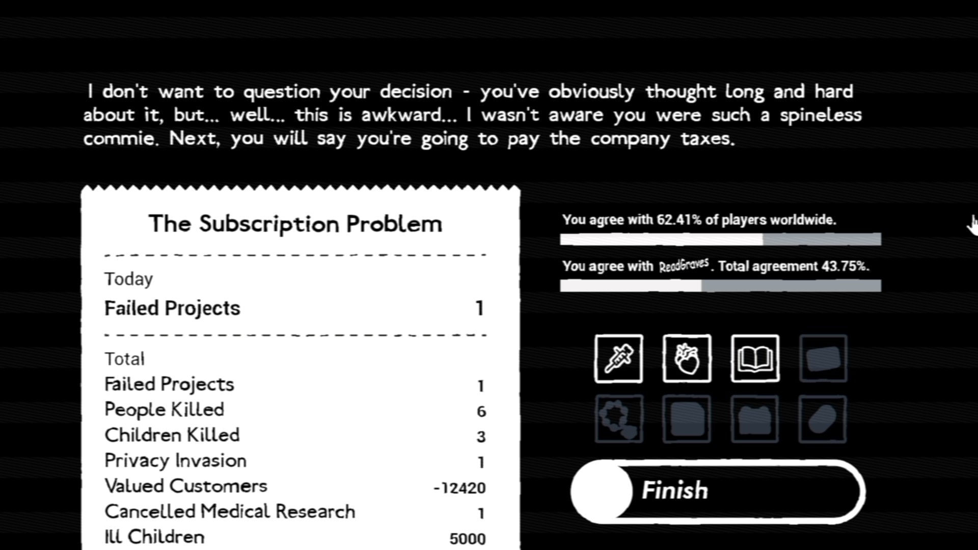"Trolley Problem, Inc" - это мрачновато-комедийная игра, которая заставляет вас принимать невозможные этические решения, основанные на реальных философских дилеммах. Разработанная Read Graves, эта инди-симуляция погружает вас в классический сценарий "Проблема троллейбуса", а затем закручивает во все более запутанные моральные проблемы, от которых зависит судьба миллионов. Игра заставляет вас пройти через напряженный двухчасовой опыт, где каждый выбор ставится под сомнение настойчивым рассказчиком, создавая напряженную динамику "спина к спине". Каждая дилемма основана на реальных философских работах с соответствующими ссылками, что придает академический вес неудобным ситуациям. Вам предстоит сделать ужасный выбор, на который нет хороших ответов, а есть только разные степени плохого исхода. Приняв решение, вы сможете увидеть, как ваш моральный компас сопоставляется с игроками по всему миру. В игре реализована полная интеграция с Twitch, что позволяет зрителям влиять на ваш выбор в режиме реального времени. Созданная Сэмюэлем Рид-Грейвзом, исполнительным продюсером "Банды зверей", игра представляет собой блестящее и неловкое исследование этики, обернутое в темную комедию. Непринужденная, но заставляющая задуматься игра заставит вас задуматься о том, как бы вы поступили, столкнувшись с невозможными решениями.