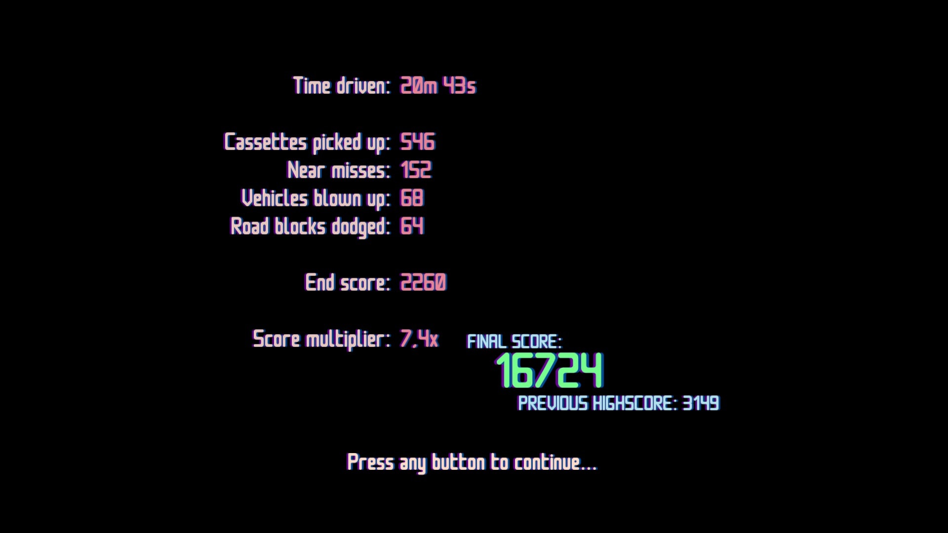"Florida Interstate '86" - казуальная инди-гоночная игра, передающая ностальгию по 1980-м годам через бесконечные гонки по шоссе. Игроки едут по стилизованной версии пропитанного солнцем ландшафта Флориды с главной целью - проехать как можно дальше к закату и при этом набрать максимальное количество очков. Система начисления очков вознаграждает как за сбор разбросанных кассет, так и за рискованные маневры, воплощающие бунтарский дух эпохи.