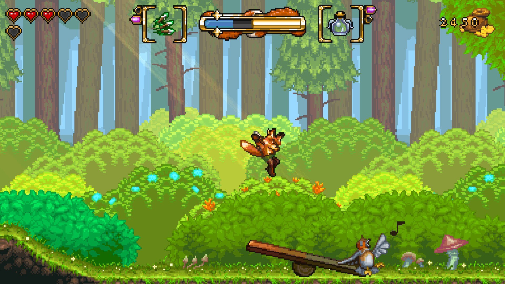 "FOX n FORESTS" - это двухмерный экшен-платформер, в котором классический 16-битный геймплей сочетается с современным дизайном. Вы играете за лисенка Рика, который отправляется на поиски, чтобы раскрыть тайну пятого сезона и восстановить справедливость в лесу и его обитателях. Особенность игры заключается в том, что вы можете переключаться между разными сезонами на лету, трансформируя окружение, чтобы получить доступ к новым зонам, перехитрить врагов и обнаружить скрытые секреты.