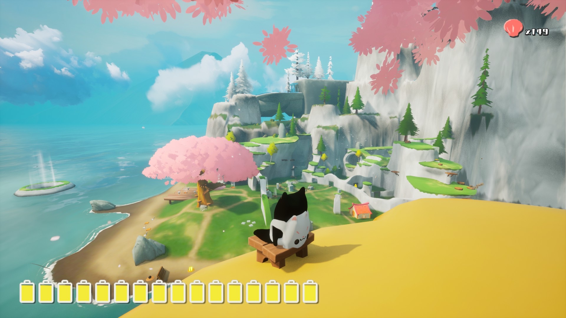Остров предлагает обширный исследуемый мир, охватывающий прибрежные пляжи, неисправную трамвайную станцию, город Архипелаг и заснеженные горные вершины. Каждая область представляет собой экологические головоломки и множество интерактивных объектов, чтобы удовлетворить ваше кошачье любопытство. Геймплей акцентирует внимание на помощи местным жителям с их проблемами — например, помощь горожанам с церемонией или восстановление трамвайного сообщения — при этом преодолевая сложную местность и препятствия.