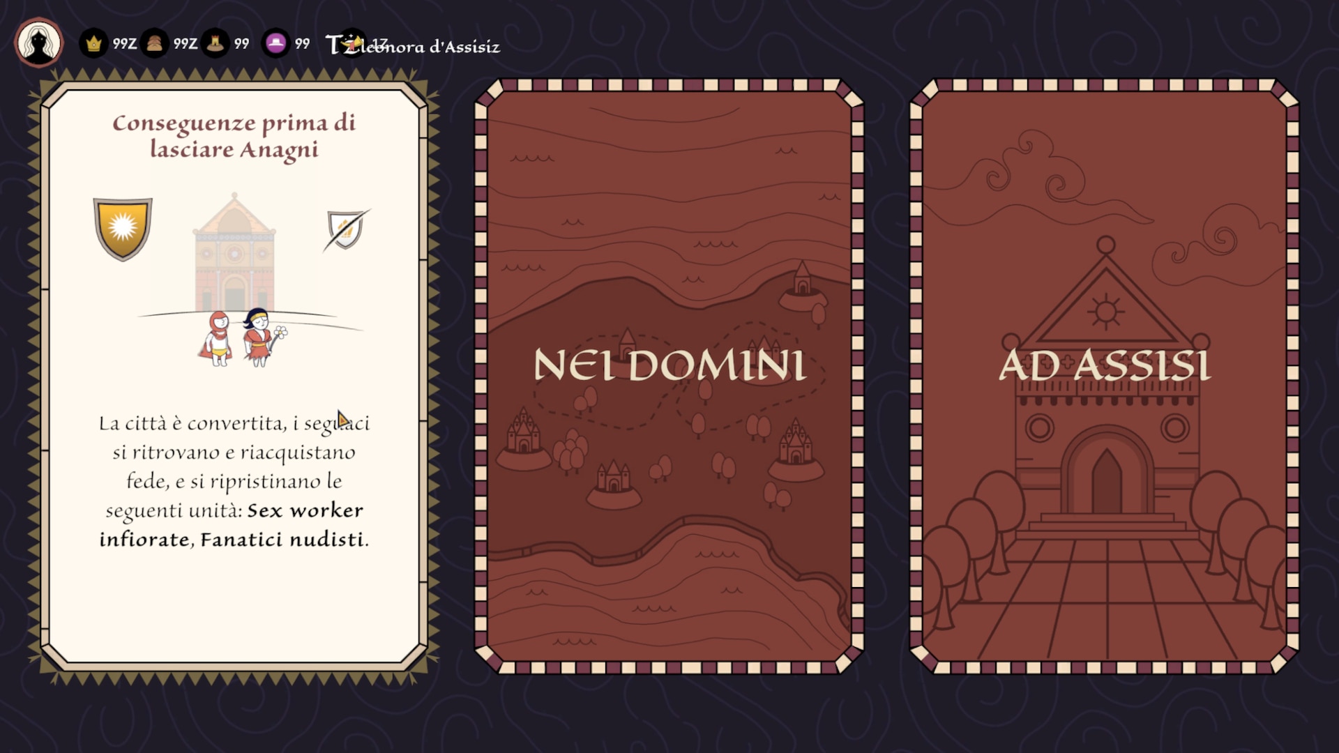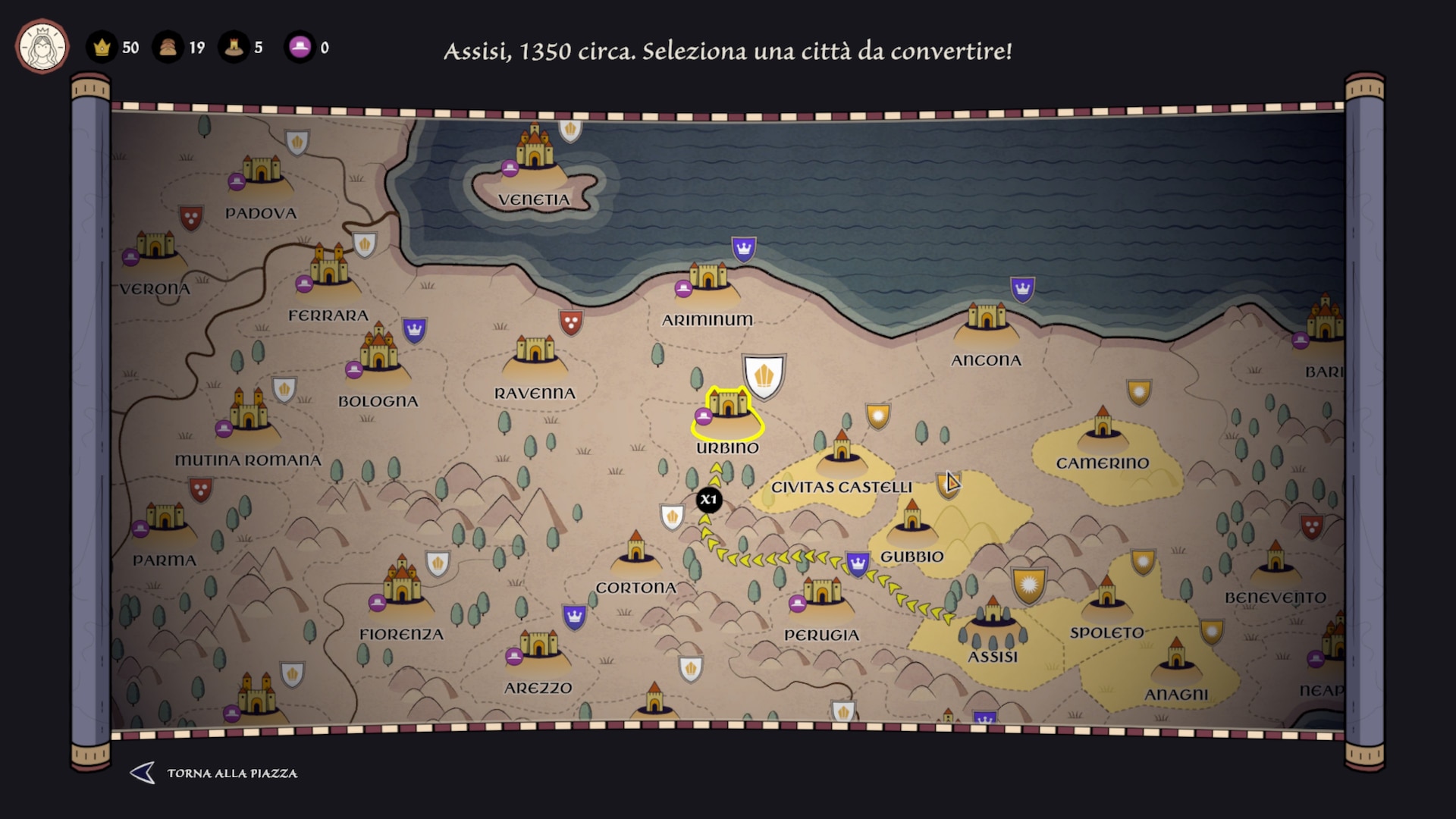 Даже неудача становится возможностью для обучения благодаря механике реинкарнации - если ваш святой умрет, не достигнув цели, вы сможете начать заново, с новыми задачами и усовершенствованными стратегиями. Исторический итальянский сеттинг передает красоту и суматоху эпохи, представляя общество, зажатое между блеском и конфликтом, которое отчаянно нуждается в духовном руководстве. Успех измеряется тем, насколько быстро и эффективно вы распространите свое влияние на средневековый ландшафт.