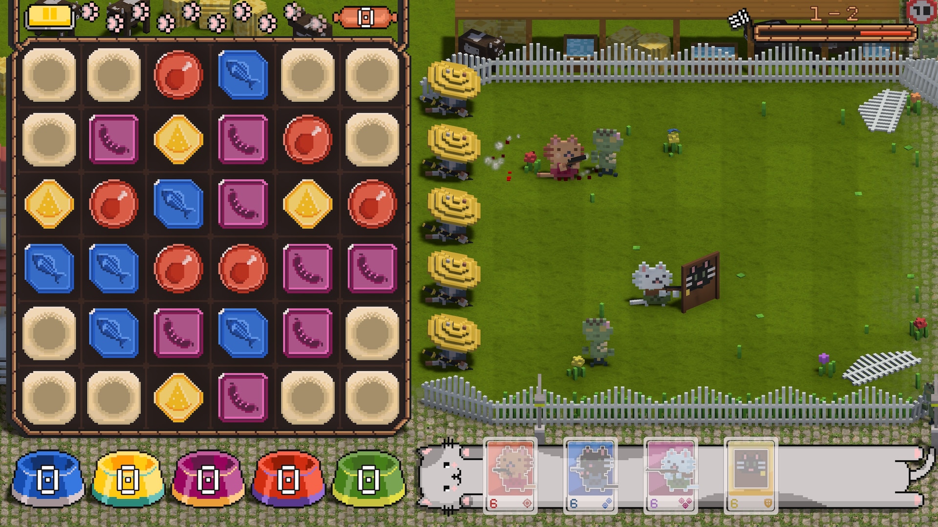 Стратегическая глубина достигается за счет сбора и настройки вашего отряда причудливых кошачьих персонажей, а также возможности объединить трех котят, чтобы создать мощных супербоевых котов. Сражения разворачиваются в самых разных условиях - от задних дворов пригородов до таинственных пустынь, - и каждый из них ставит перед вами свои тактические задачи, требующие хитроумной стратегии.
