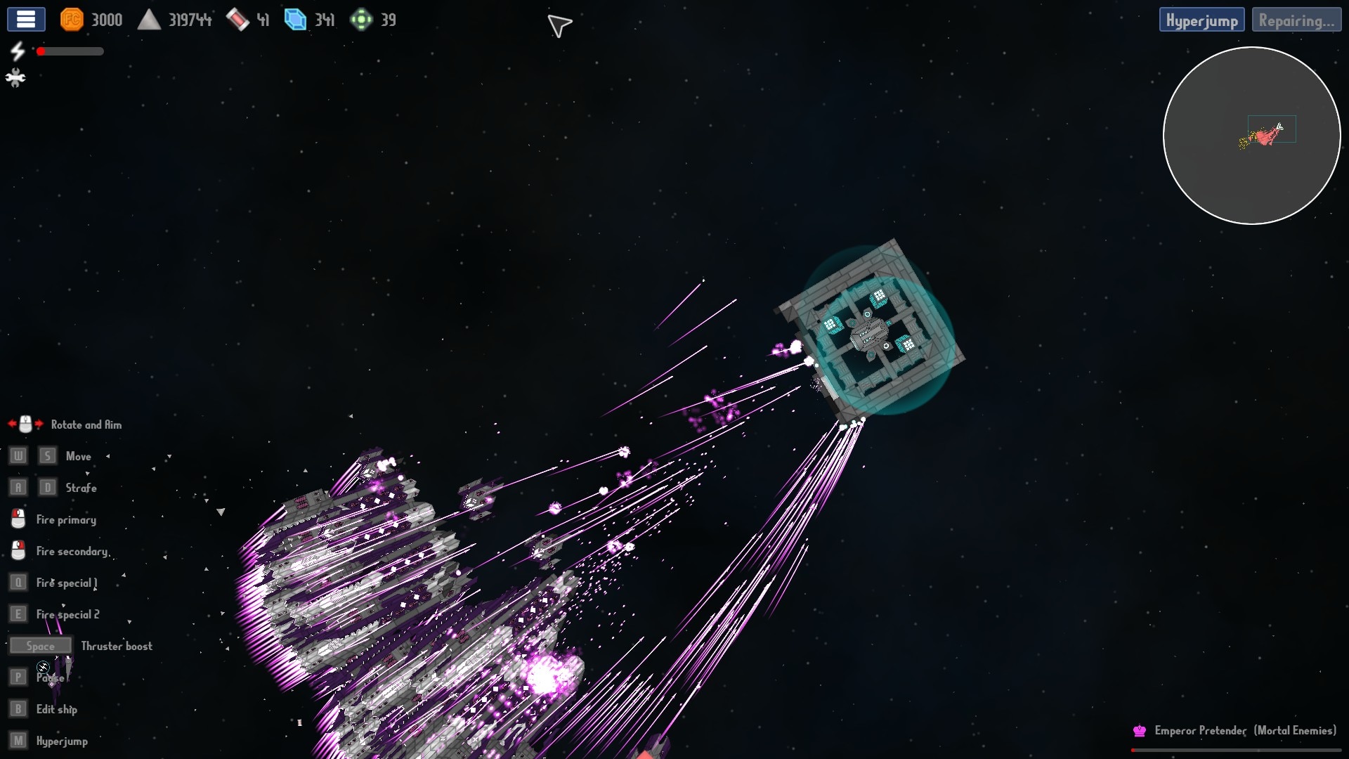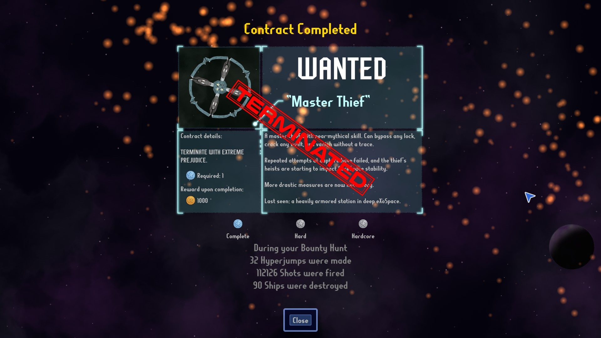 Основной геймплей включает в себя навигацию по опасным регионам eXoSpace с помощью непредсказуемых гиперпрыжков, которые приводят к случайным встречам, как враждебным, так и дружественным, кульминацией которых становятся напряженные бои с боссами против целей, за которые вы получаете вознаграждение. Бой, основанный на физике, делает каждое столкновение динамичным и тактическим, вознаграждая как продуманный дизайн корабля, так и умелое пилотирование. Структура roguelike гарантирует, что не будет двух одинаковых заданий, а рандомизированные карты, враги и события сделают каждую охоту за головами непредсказуемой.