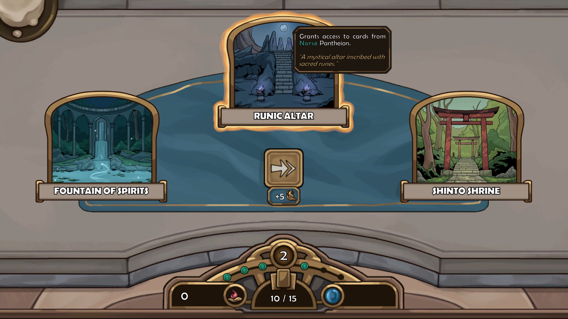 Каждая карта относится к нескольким Аспектам, таким как Война, Свет или Хитрость, что позволяет использовать целенаправленные стратегии или творческие комбинации в разных мифологиях. Ограниченное пространство в местах сражений создает тактическую глубину - вы можете использовать одно могущественное божество или координировать действия нескольких последователей для получения синергетического эффекта. В перерывах между сражениями вы будете посещать Священные места, чтобы получить новые карты и улучшить свою колоду с помощью системы обмена.