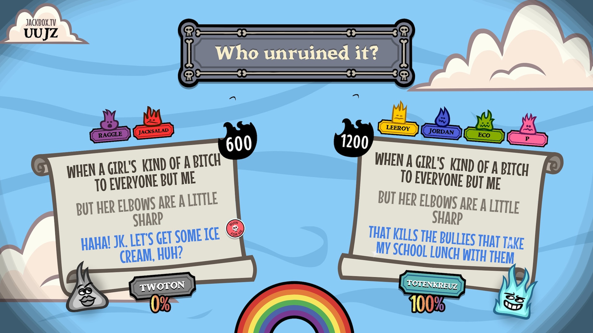 The Jackbox Party Pack 11 на PCСкриншот игры The Jackbox Party Pack 11Геймплей The Jackbox Party Pack 11Прохождение игры The Jackbox Party Pack 11The Jackbox Party Pack 11 стримИгровой мир The Jackbox Party Pack 11Локация The Jackbox Party Pack 11Скачать The Jackbox Party Pack 11The Jackbox Party Pack 11 на компьютер