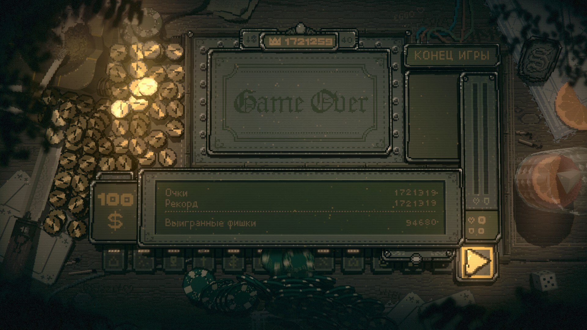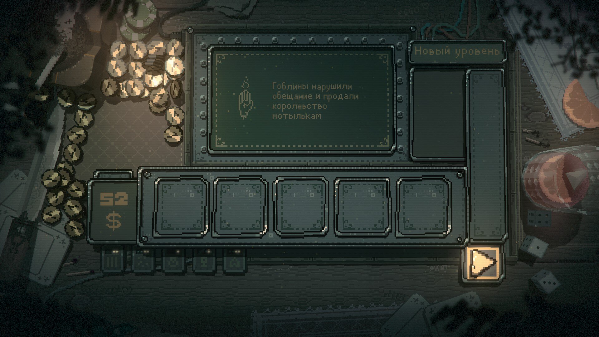 "Slots & Daggers" - это инди-рогелик, в котором механика игровых автоматов смешана с фэнтезийной ролевой игрой, созданный соло-разработчиком Friedemann как намеренный отход от своих предыдущих работ. Вы будете вращать барабаны, чтобы определить свои атаки и ресурсы, сражаясь в странном фэнтезийном мире, населенном гоблинами и другими странными существами. Игра отличается грубыми, очаровательными рисунками персонажей в сочетании с ретро-визуальными эффектами и скрипучими ритмами барабанной установки в стиле хип-хоп, которые дополняют затягивающий геймплей в аркадном стиле. Основная кампания длится от 4 до 8 часов и представляет собой классический roguelike с пошаговыми боями и подсчетом чисел, а также случайными исходами вращений игрового автомата. Для игроков, ищущих дополнительные трудности, предусмотрен режим "Арена яиц", проверяющий ваше мастерство владения игровыми системами. Несмотря на то, что это небольшой, сфокусированный одиночный проект, он обеспечивает концентрированный опыт, сочетающий принятие стратегических решений с допаминовыми ощущениями от вращения слотов и сбора монет. Игра принимает свою причудливую идентичность с намеренно грубой эстетикой и простыми механиками, а не пытается конкурировать с более крупными продуктами. Если вам нужен короткий, странный и удивительно тактический гибрид аркады и ролевой игры, то эта игра - именно то, что нужно.