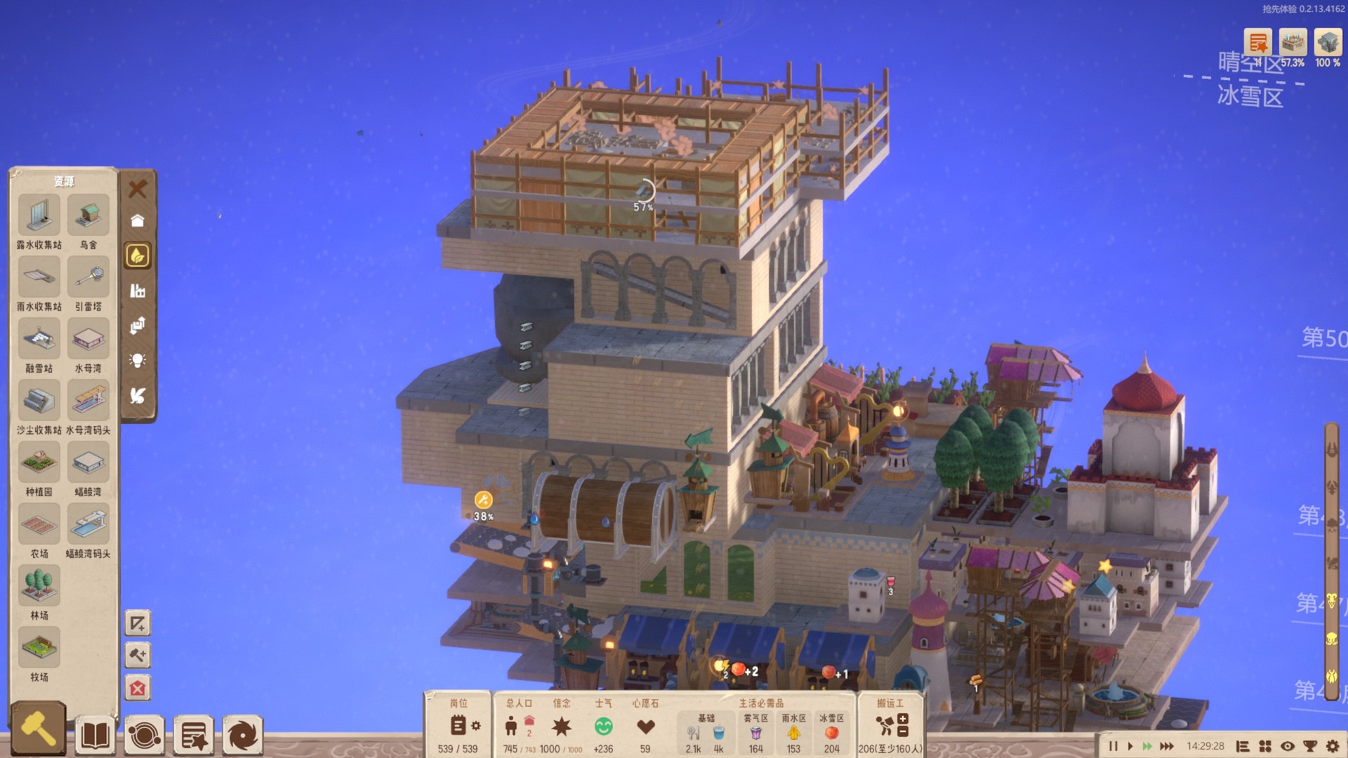 "STARIO: Haven Tower" - это казуальный стратегический симулятор от Stargate Games, в котором вам предстоит построить гравитационную башню, поднимающуюся через шесть различных атмосферных слоев - от песчаных оснований, тумана, дождя и мороза до чистого неба и, наконец, звезд. Основной геймплей вращается вокруг строительства вертикального города, пронзающего небеса, где каждый слой поддерживает свою собственную инфраструктуру ресурсов, связанную сложной сетью рабочей силы, трубопроводов, воздушных шаров и специализированных юнитов под названием Stronghands. Вы будете расширять свою башню, используя структурные скобы, создавая подвесные небесные сады и решетчатые воздушные платформы, которые бросают вызов обычным архитектурным ограничениям. Управление жителями башни, называемыми Towertizens, включает в себя не только логистику - вы будете строить ритуальные платформы, где их коллективная вера проявляется в виде ощутимой силы, позволяющей управлять погодой и исполнять желания в обмен на драгоценные камни. По мере того как вы будете подниматься все выше, ваше население столкнется с испытаниями, катастрофами и кризисами веры, которые проверят ваше лидерство. Чудо-башни служат важнейшими сооружениями для поддержания морального духа, повышения эффективности и успокоения катастрофических событий, угрожающих вашему восхождению. Игра сочетает в себе управление ресурсами и строительство города на уникальном вертикальном полотне, где атмосферные слои создают различные экологические проблемы. Ваш успех зависит от баланса между инфраструктурой, управлением верой и смягчением последствий стихийных бедствий, в то же время достигая небес в этом небесном строительстве.