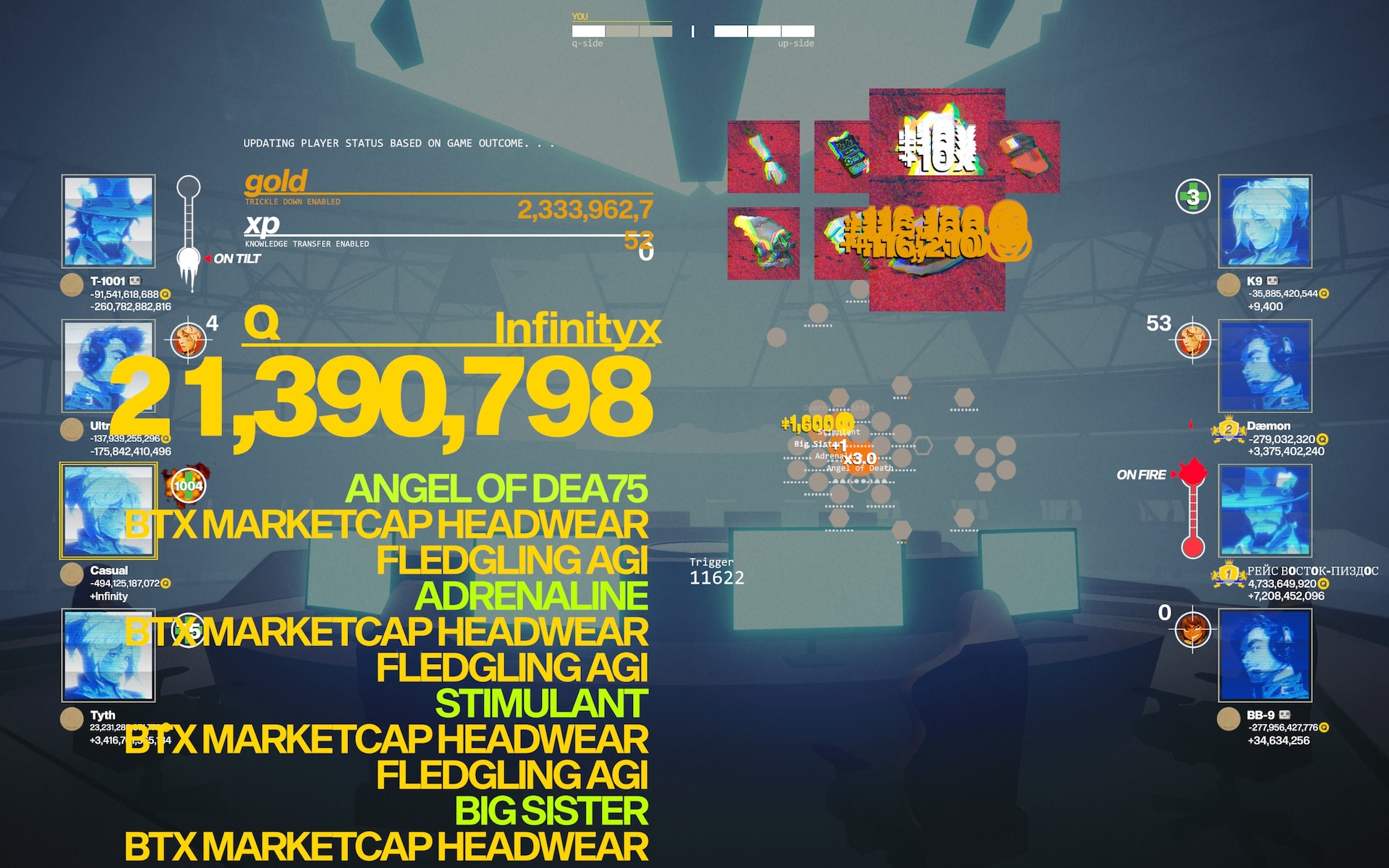 "Q-UP" - это гибрид казуальной ролевой игры и стратегии от создателей Universal Paperclips, сатиризирующий соревновательные игры с абсурдным поворотом: каждый матч решается подбрасыванием монетки. Игра высмеивает разочарование от токсичных многопользовательских игр - смурфов, рейнджеров и неравенства в навыках, - заменяя их "совершенно справедливой" случайностью и шутливой системой квантового подбора игроков. Вам предстоит пройти через историю, связанную с корпоративными киберспортивными войнами и решениями, изменяющими вселенную, поднимаясь по соревновательной лестнице, основанной исключительно на удаче. В игре 8 уникальных героев с разными способностями, командные бои 4v4, более 200 предметов и 400 навыков, которые можно открыть с помощью геометрической системы комбо на основе триггеров. Вы можете объединиться с друзьями, пройти одиночную очередь или полностью играть против ботов в режиме одиночной игры. Имея более 1,38 10 теоретических комбинаций построек и повествование, включающее в себя все: от обратного слияния до трехтонного кита, Q-UP полностью соответствует своей комедийной идее. Игра ставит вопрос о том, имеет ли значение победа и поражение, когда мастерство исключается из уравнения, полностью переворачивая представления о соревновательных играх с ног на голову.