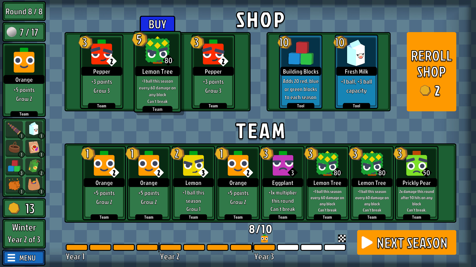 "Breakout Season" - это хаотичная аркадная roguelike, в которой классический экшен с разрушением блоков сочетается со стратегической глубиной и физически обоснованным геймплеем. Разработанная датской инди-студией Kakaos Collective, игра предлагает вам пройти яркие, наполненные блоками уровни в четырех разных сезонах, каждый из которых усложняется новыми препятствиями. Вам предстоит выбрать одного из 5 уникальных персонажей, каждый из которых предлагает различные стили игры, а также собрать 25+ разноцветных блоков и 30+ мощных инструментов, которые кардинально изменят ваш подход. Структура roguelike гарантирует, что каждый 20-30-минутный забег будет отличаться от других, пока вы экспериментируете с дикими синергиями и билдами, превращая непредсказуемые рикошеты в высокорезультативные возможности. Стратегическое планирование сочетается с аркадным хаосом, когда вы собираете свою идеальную команду из блоков и инструментов, чтобы доминировать в таблице лидеров. С разблокируемыми предметами и достижениями, за которые можно побороться, весь опыт можно полностью изучить за 3-4 часа. Этот дебютный релиз от двух увлеченных разработчиков демонстрирует, как целенаправленный инди-дизайн может вместить в компактную упаковку массу удовольствия. Красочная презентация и "сочное" разрушение блоков создают приятную обратную связь, благодаря которой игра не теряет своей актуальности. Неважно, гонитесь ли вы за идеальными бросками или погружаетесь в хаос, "Breakout Season" предлагает переиграть аркадные основы.
