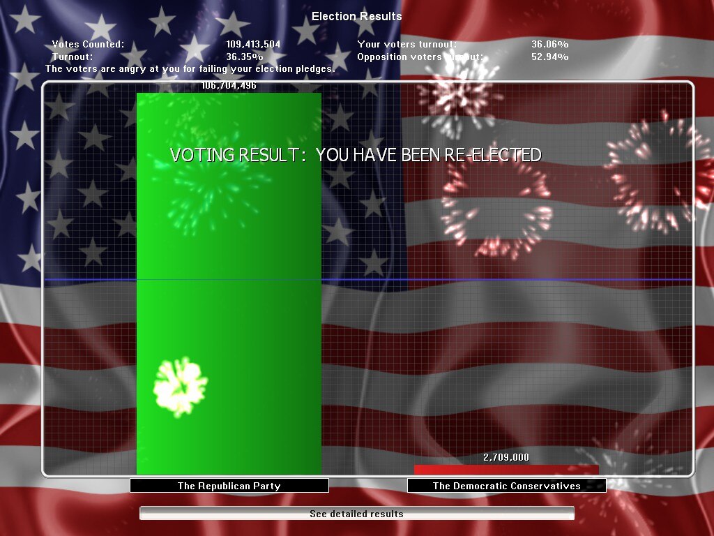Игра затрагивает весь политический спектр, включая такие спорные вопросы, как исследование стволовых клеток, школьная молитва, государственное здравоохранение, пособия по безработице, налоговые убежища, смертная казнь, военные расходы и гражданские свободы. Ваша задача - сохранить контроль над ситуацией, не жертвуя гражданскими свободами, удовлетворить потребности граждан, управляя бюджетом, и сохранить дипломатические отношения с другими странами. Democracy 2 - это полигон для испытания любой политической идеологии, поэтому она идеально подходит для игроков, которым нравятся интеллектуальные, мозговые стратегические игры, которые легко изучить, но сложно освоить.