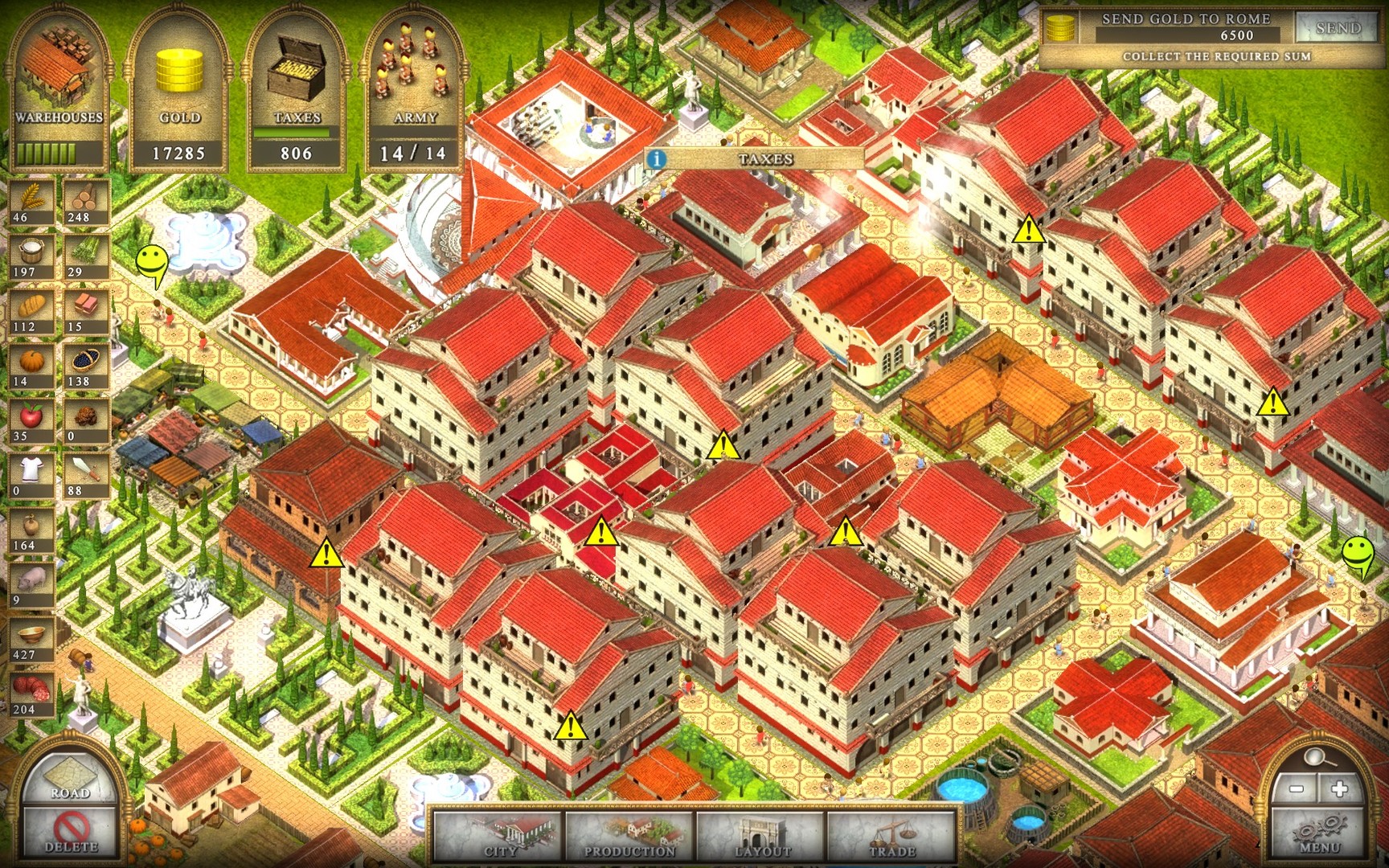 "Ancient Rome 2" - это казуальный симулятор стратегии от Ladia Group, в котором вам предстоит построить и управлять процветающим римским поселением. Вы построите жилые кварталы и соедините их дорогами, добавив такие необходимые здания, как рынки, школы и театры, чтобы граждане были счастливы. Экономическая система требует от вас создания производственных цепочек: выращивайте пшеницу для производства хлеба, добывайте глину для гончарных изделий и снабжайте население этими товарами, чтобы повысить его уровень жизни. Более богатые семьи приносят больше налогов, которые вы можете реинвестировать в развитие города или продавать излишки продукции для получения дополнительного дохода. В игре 30 уровней, которые постепенно требуют от вас навыков строительства городов на больших строительных картах. Успешное прохождение всех миссий открывает возможность построить личную виллу в качестве награды. Игровой процесс сосредоточен на балансе между производством ресурсов, благосостоянием граждан и экономическим ростом, чтобы создать процветающий римский город. Это простое управление, сочетающее в себе строительство, цепочки ресурсов и гражданское планирование без чрезмерной сложности.