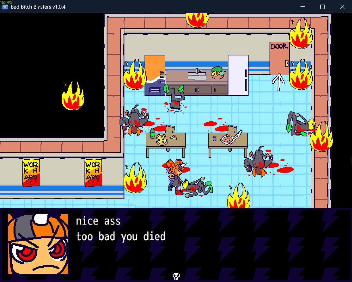 "Bad Bitch Blasters" - это пошаговая стратегическая ролевая игра, в которой четыре персонажа - Дженнифер, Норма, Рональдо и Фу - объединяются в команды, чтобы уничтожить "Организацию" и выпустить на волю "Тайну, легендарную пожирательницу мертвецов", чтобы уничтожить все вокруг. Игрокам предстоит сразиться с причудливыми врагами, среди которых полиция, охотники за головами, мусорные баки и массивные роботы, в нетрадиционном пошаговом бою, отказавшемся от традиционного гриндинга и повышения уровня. В игре 26 набираемых персонажей и нарочито грубая анимация в стиле MS Paint, сопровождающая стремительный, аркадный геймплей. Основная кампания длится 3 часа, а для любителей завершить ее - более 20 часов. Каждое принятое вами решение существенно влияет на сюжет и приводит к одной из восьми различных концовок. В игре много ненормативной лексики, умышленных опечаток, чит-кодов, секретных персонажей и скрытых сюжетных сцен, которые придают ей хаотичный тон. Разнообразие врагов - главная особенность игры: большинство из них появляются только один раз и имеют уникальную анимацию на протяжении всей игры. Разработанная компанией Goiaba Megas Xellox как продолжение "Demonpact: Clarice", эта инди-игра выдержана в агрессивно-неуважительном стиле, в котором дикое творчество важнее полировки.