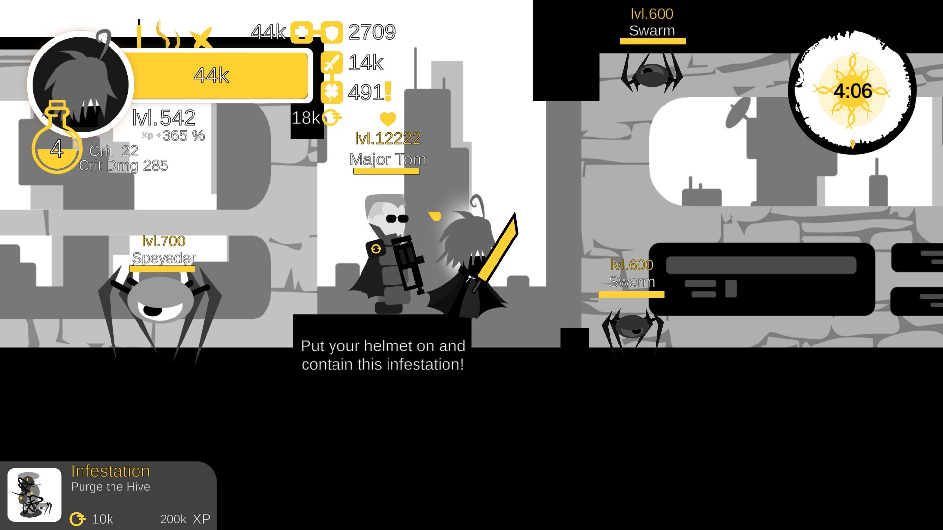"The End Grows" — это приключенческая ролевая игра, в которой вы оказываетесь в умирающем мире, который перезапускается каждые 5 минут. Таинственное желтое существо предлагает вам возможность повторно переживать эти последние моменты, ища ответы на запрограммированный апокалипсис, в то время как враждебные роботы-переработчики угрожают вашему выживанию. Основная механика игры вращается вокруг абсурдного повышения уровня — победа над одним врагом может дать более 100 уровней — и вы распределяете очки характеристик в режиме реального времени во время боя, используя джойстик. Предметы сохраняются между прохождениями и масштабируются с помощью процентных бонусов, создавая экспоненциальный рост мощности, который позволяет вам получить доступ к новым областям и способностям. Вы будете исследовать разнообразный 2D-открытый мир, наполненный руинами, городами, лесами и пустынями, одновременно участвуя в войне между фракциями H и V, выбирая, помогать ли одной из сторон или сражаться с ними за награды. Минималистичная графика в оттенках серого с желтыми акцентами дополняет загадочную историю о бесконечности и абсурдности, рассказанную через детали окружающей среды и диалоги NPC. События в реальном времени появляются на вашей мини-карте в виде обратного отсчета, а улучшения мобильности в конечном итоге позволяют вам обогнуть весь мир за 5 минут. Эта игра, разработанная в одиночку, предлагает около двадцати часов игрового процесса в восьми главах, сочетая динамичный экшен со стратегическим построением персонажа и взаимосвязанной историей. Каждый забег начинается с 1-го уровня, что делает каждый цикл гонкой за оптимизацией вашего персонажа и выполнением целей до истечения времени.