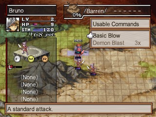 Ваша группа состоит из солдат, которых вы покупаете за очки Гига, и вы должны расставить их на поле боя так, чтобы их атрибуты и навыки были использованы с пользой. Однако если у вас закончились очки, вы можете похитить жителей города и заставить их присоединиться к вашему отряду. Сражение основано на командной работе, и существует 40 различных групповых способностей, которые вы можете добавить в свой арсенал, пытаясь победить врага и спасти Продеста.