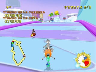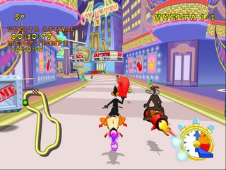 Впервые вышедшая на Dreamcast в 2000 году, игра Space Race принесла на PlayStation 2 безумную гонку на картах в духе Looney Tunes. Обновленная к дебюту на PS2, игра включает в себя, помимо прочего, эксклюзивный игровой режим под названием Tournament. В этом режиме участники участвуют в серии заездов с единственной целью - набрать очки позиционирования. Персонаж, набравший наибольшее количество очков после прохождения всех дистанций, объявляется победителем и награждается жетонами, которые, в свою очередь, можно использовать для разблокировки скрытых предметов, например, рисунков персонажей и даже фильма Looney Tunes. Кстати, жетоны являются основным требованием во многих режимах игры, а также выдаются за выдающиеся достижения в режимах Race, Time Trial и Challenge. Основная часть геймплея приходится на режим "Гонка", где игроки могут выбрать гонщика и трассу. Побеждая в гонках в этом режиме, вы сможете разблокировать дополнительные трассы, начиная с планеты ACME и заканчивая квадрантом Дикого Запада.