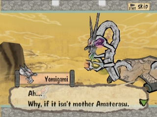 В настоящем времени Сусано, потомок Наги и самопровозглашенный величайший воин, разрушает печать Орочи, потому что не верит в легенду и хочет доказать ее ложность; Орочи сбегает и проклинает земли, высасывая жизнь из каждого живого существа. Сакуя, древесный призрак и хранительница деревни Камики, призывает богиню солнца Аматерасу, известную жителям деревни как реинкарнация белого волка Сирануи, и умоляет ее снять проклятие, накрывшее землю. В сопровождении художника Иссуна (существа высотой в дюйм, известного как Понкл) Аматерасу удается вернуть земле былую красоту.