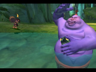 Tak 2 довольно сильно отличается от Tak and the Power of Juju. Хотя это все еще 3D-платформер, он больше сосредоточен на головоломках и боях, а не на сборе предметов. На ранних этапах, проходя уровни, Так должен использовать животных в своих интересах - например, медведя можно использовать в качестве батута, Так может ездить на бородавочниках после того, как его обрызгают скунсы, чтобы замаскировать его запах, и многое другое. Джиболба тоже участвует в игре, но для удобства транспортировки он превратился в блоху. В результате вы можете бросать его во врагов, чтобы укусить их и заставить заснуть.