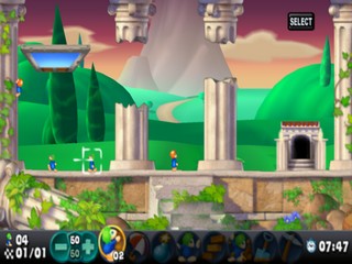Оригинальная Lemmings была переделана для PSP с новой графикой. В этой головоломке вы проводите группу леммингов через все более сложные уровни. Существами нельзя управлять напрямую, но вы можете назначать им навыки, такие как дайвинг (копание вниз), башинг (пробивание горизонтально), строительство и т.д., чтобы они достигли конца уровня невредимыми.