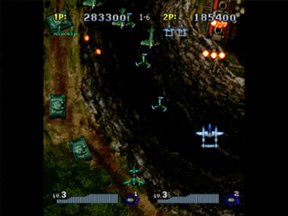 Среди врагов - истребители различных форм, роящиеся над игроком на каждом уровне, а также боссы в середине и конце миссии, некоторые из которых занимают половину экрана игрока. Уничтожение врагов на экране и получение бонусов влияет на стандартные пушки истребителя, которым вы управляете. Традиционное усиление оружия приводит к увеличению количества выстрелов одновременно, а также к появлению дополнительных следящих пуль и лазеров.