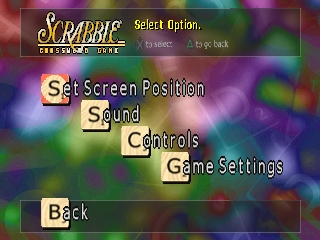 Scrabble для PlayStation сохраняет имя и счет каждого игрока после каждой игры, если на карте памяти есть хотя бы два свободных блока. У вас нет времени сыграть полную партию? Не беда! Игроки могут сохранить начатую игру и вернуться к ней в другой раз. Для настройки игрового процесса доступны следующие параметры: несколько наборов плиток; ограничение по времени со снятием штрафных очков за превышение отведенного времени; потеря хода за неправильные слова (включено или выключено); автоматический выбор плиток компьютером вместо ручного выбора игроком; отключение некоторых графических функций для ускорения работы компьютерного ИИ.