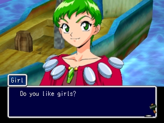 - Уайна Грэппл - (17 лет) Дочь короля пиратов, Уайна - шумная девушка, обожающая драки; она присоединяется к партии, чтобы отправиться на поиски приключений. Она носит бикини, а также повязку, но для пущего эффекта у нее нет ни одного глаза. Если вы будете внимательны во время свиданий, то увидите, что повязка на глазах Уайны время от времени меняется. Сначала ее привлекает Майс из-за его силы, но позже она возвращает чувства Музы. Оружие Вины - большой боевой молот.