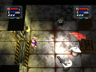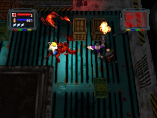 Каждый персонаж также способен совершать маневр strafe, чтобы избежать вражеских атак. Помимо элементарных ящиков со здоровьем и боеприпасами, можно получить бонусы, которые увеличивают мощность оружия, временно замораживают врагов, делают вас невидимым на короткое время, наделяют персонажа ограниченной неуязвимостью или делают вас быстрее, с неограниченным количеством патронов на определенное время. Если врагов окажется слишком много, каждый персонаж может выпустить определенное количество умных бомб, которые уничтожат всех врагов на экране. Действие происходит сверху вниз, и его можно приближать или отдалять по желанию. На каждом уровне можно собирать монеты, а в конце каждого этапа вам будет присвоен рейтинг жадности, зависящий от количества собранных вами монет.