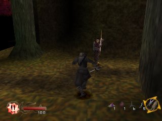 Рикимару, вооруженный одним ниндзято, сильнее Аяме, но относительно медленнее. Аяме носит пару танто (хотя во второй игре у нее есть вакидзаси), она быстрее и проводит больше комбо, чем Рикимару, но слабее его. Все уровни проходят ночью, чтобы компенсировать технические ограничения PlayStation; высокая скорость перерисовки в игре снижается за счет ночного времени суток и уменьшения расстояния, на котором игрок может видеть. Оба персонажа вооружены крюком для захвата, который позволяет им взбираться на верхушки зданий и свободно перемещаться по крышам, что придает игре ощущение вертикальности, которое было редкостью для большинства игр жанра action/adventure того времени.