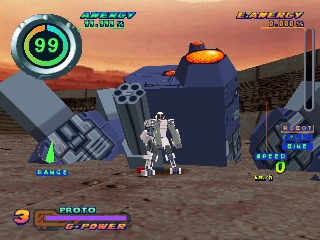 Как уже говорилось, ваш мотоцикл может переходить в несколько режимов, каждый из которых имеет свои плюсы и минусы (режим робота - медленный, но боевой, режим велосипеда - быстрый, но слабый, а режим багги - более медленный, но легкий для маневрирования). Однако вам придется использовать их все, ведь каждый этап наполнен врагами и ловушками. Бой ведется в основном в режиме робота, и в зависимости от количества врагов, которых вы поразите одновременно, заполняется счетчик комбо, который можно использовать для применения суперприемов (полезных для зачистки врагов и мин). В игре есть однопользовательская кампания "Операция", а также комплексный режим обучения.