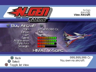 В полном режиме N.GEN Racing вы начинаете с 12 000 000 кредитов, на которые нужно купить свой первый самолет. После этого вы участвуете в чемпионатах и одиночных гонках, чтобы получить больше денег для развития своей карьеры. Когда у вас накопится достаточно денег, вы сможете купить более совершенные самолеты разных классов и получить разрешение на их полеты в других чемпионатах.